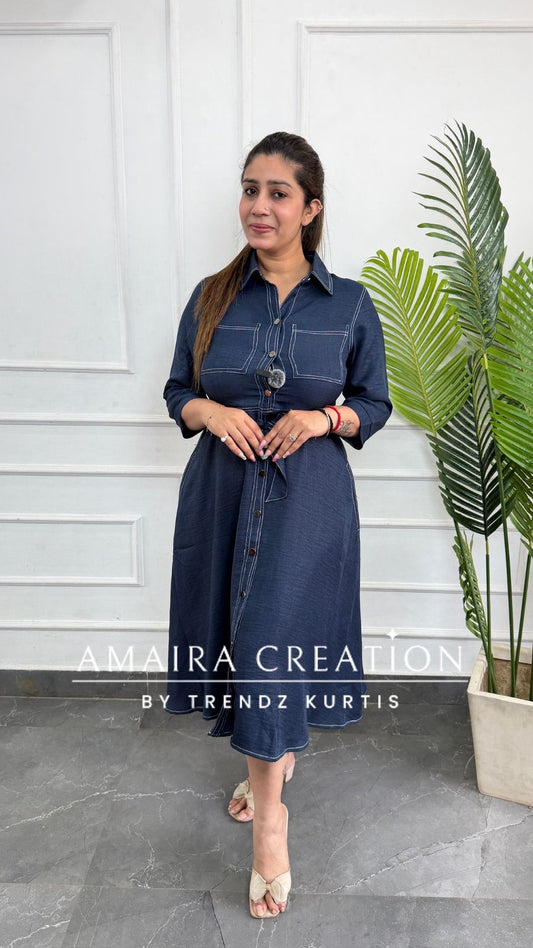 Premium Blue Colour Khadi Cotton Easy Breezy Two Piece Long cordset