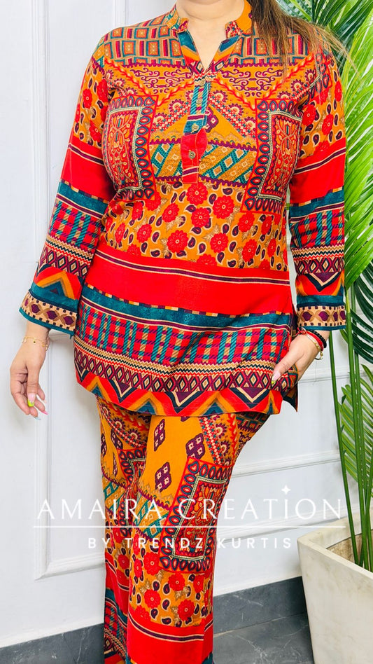 Premium Reyon Jaipuri Print Mustard Colour Super Comfortable Cord Set