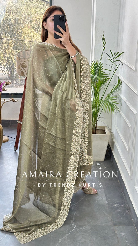 Premium Shimmer Silk Sea Green Color Sequin Emblishment Unstitched Suit