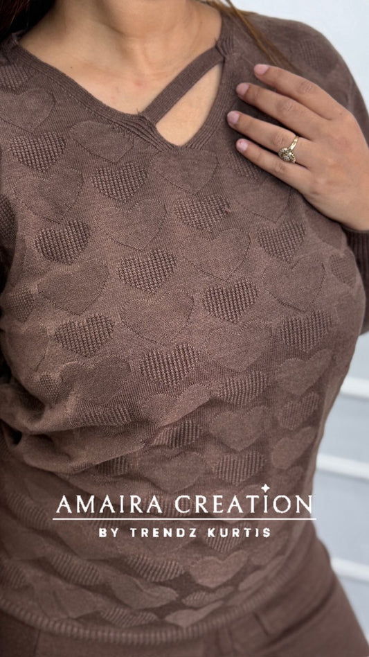 Premium Velvet Brown Color Pintuck Afghani Pant Cord Set