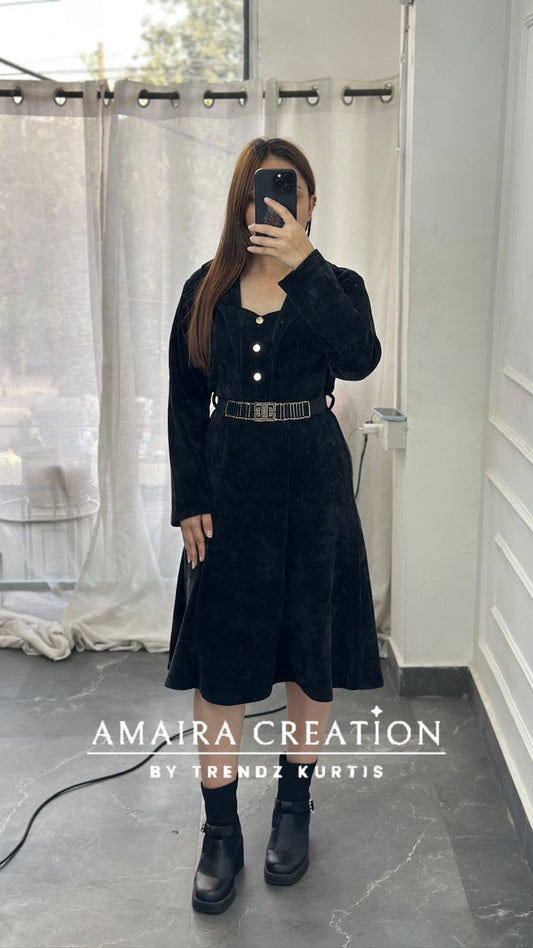 Premium Woolen Black Thread Embroidered Stylish Cut Cord Set