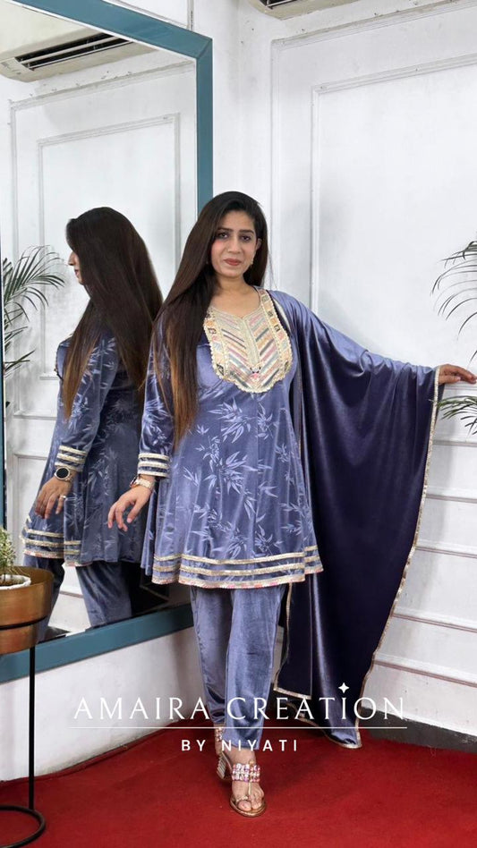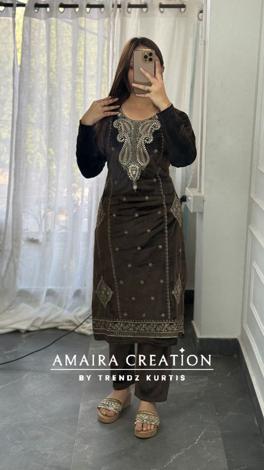 Premium Woolen Black Thread Embroidered Stylish Cut Cord Set