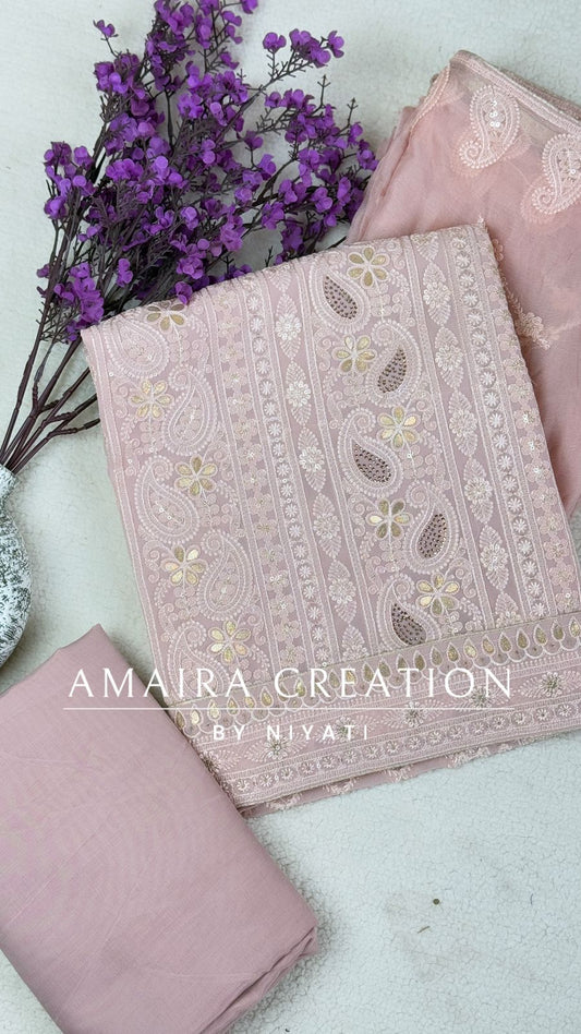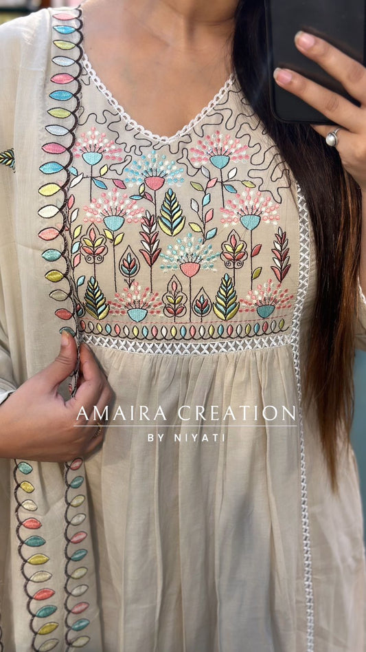 Lakhnavi Chikankari Angrakha Kurta Pant Set(A-Line)