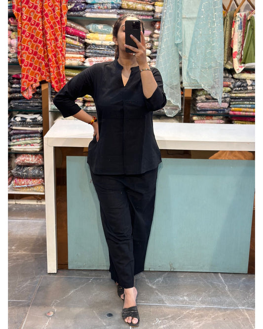 Multi Color Cotton Cord Set With Thread Embroidered Plazo