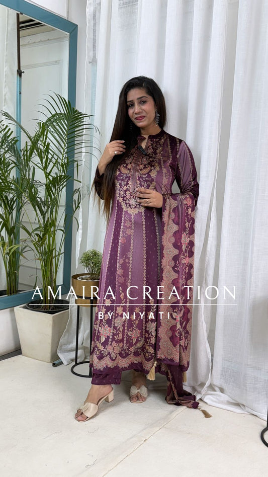 Mauve Printed Velvet Stretchable Anarkali Set