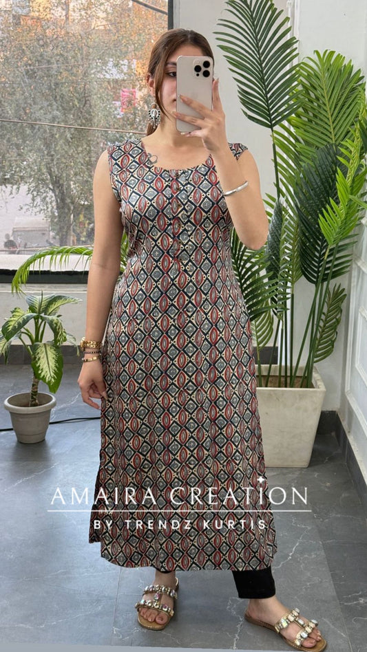 Premium Cotton Black Colour Ikkat print Kurti(17 inches sleeve available)