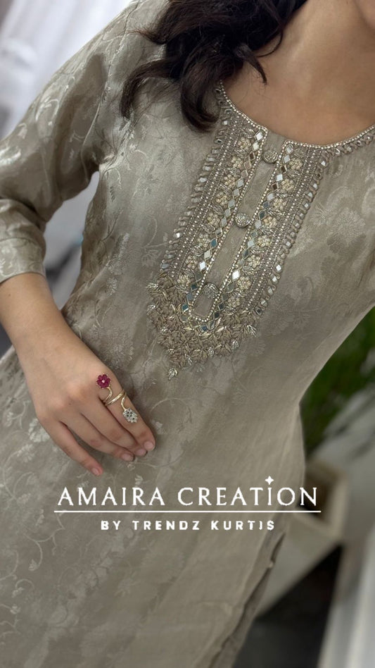 Premium Dola Silk Color Thread Embroidered Pant Set