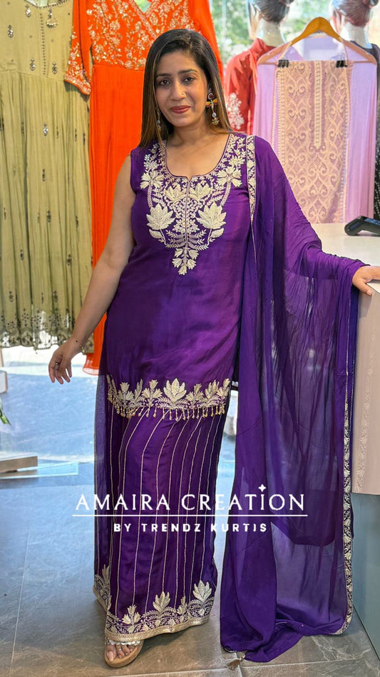 Premium Chinnon Beautiful Hand Work Plazo Set