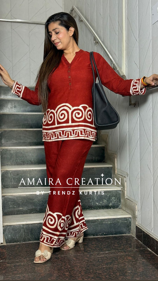 • Premium Cotton A line pant set with Floral Embroidery Detailing