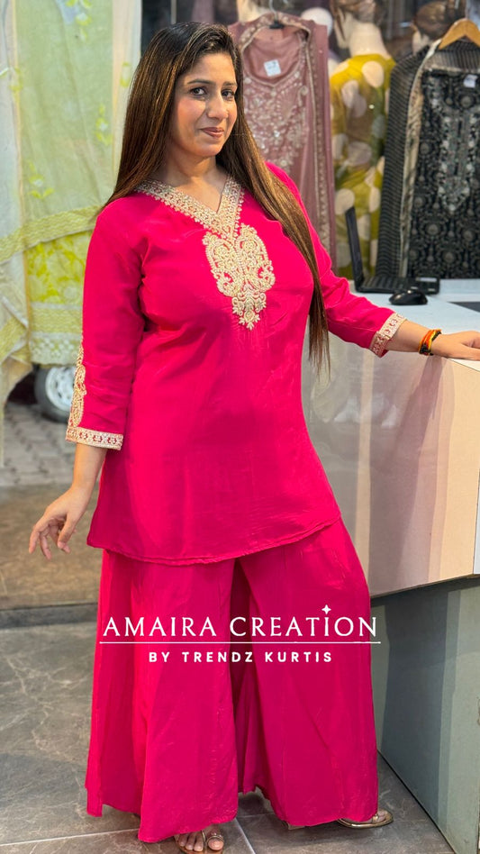 Premium Chinnon Fabric Designer Pant Set(8 inches sleeves available)