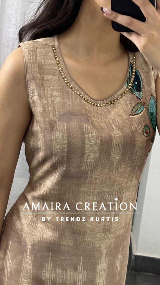 Premium Muslin Beige Color Pant Set(17 inches sleeves available)