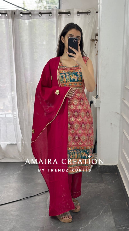 Premium Brocket Magenta Pant Set(17 inches sleeves available)