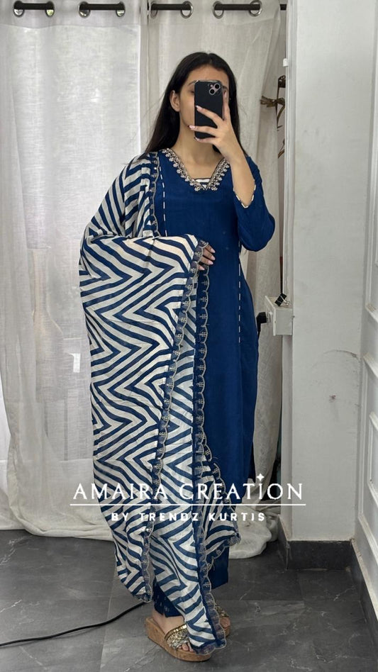 Premium Crepe C Cut Pattern Pant Set With Beautiful Neck Detailing