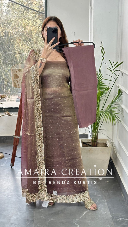 Premium Shimmer Glass Tissue Mauve Color Unstitch Suit