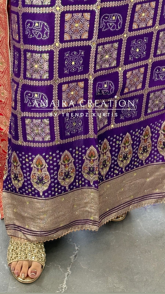 Premium Banarasi Silk Purple Color Unstitch Suit With Contrast Banarasi Dupatta