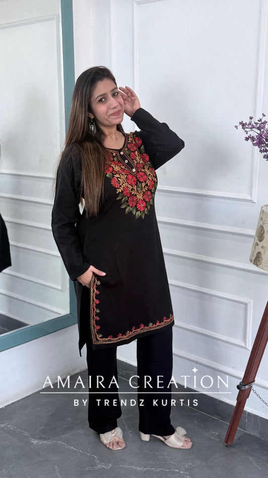 Premium Woolen Falsa Colour Embroidered Short Kurti