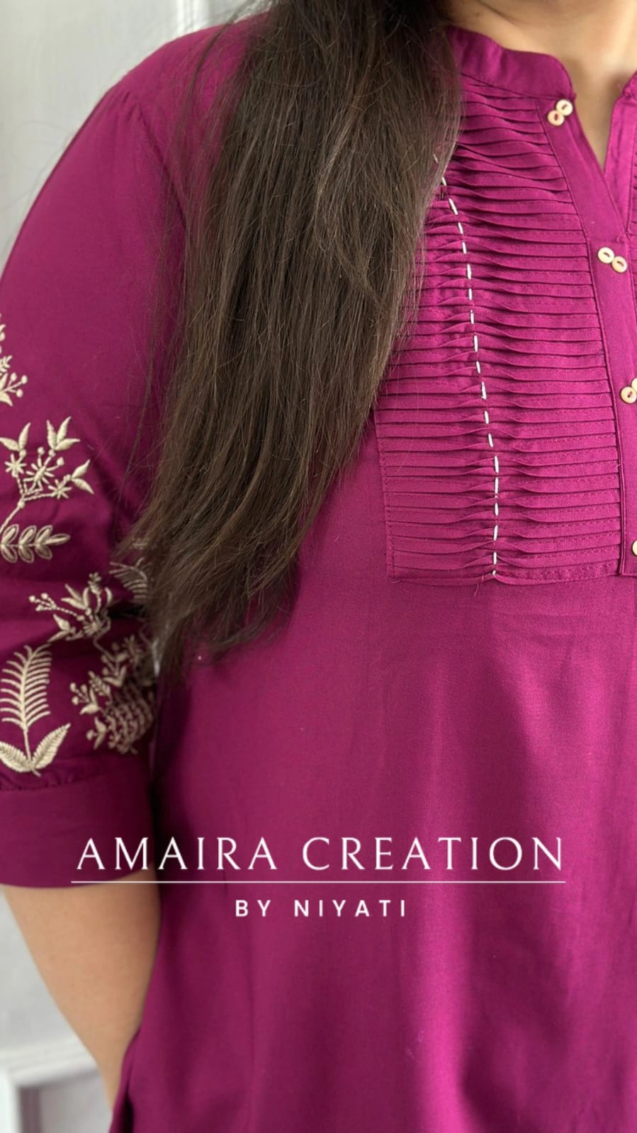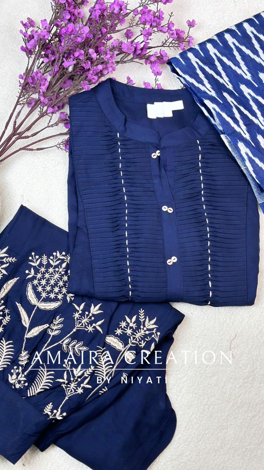 Kurti length 45 Inches (Approx) Pant length 39 Inches (Approx) Pocket Available Dry Clean Only *Disclaimer: Please note that minor color variations may arise due to varying screen resolutions.*