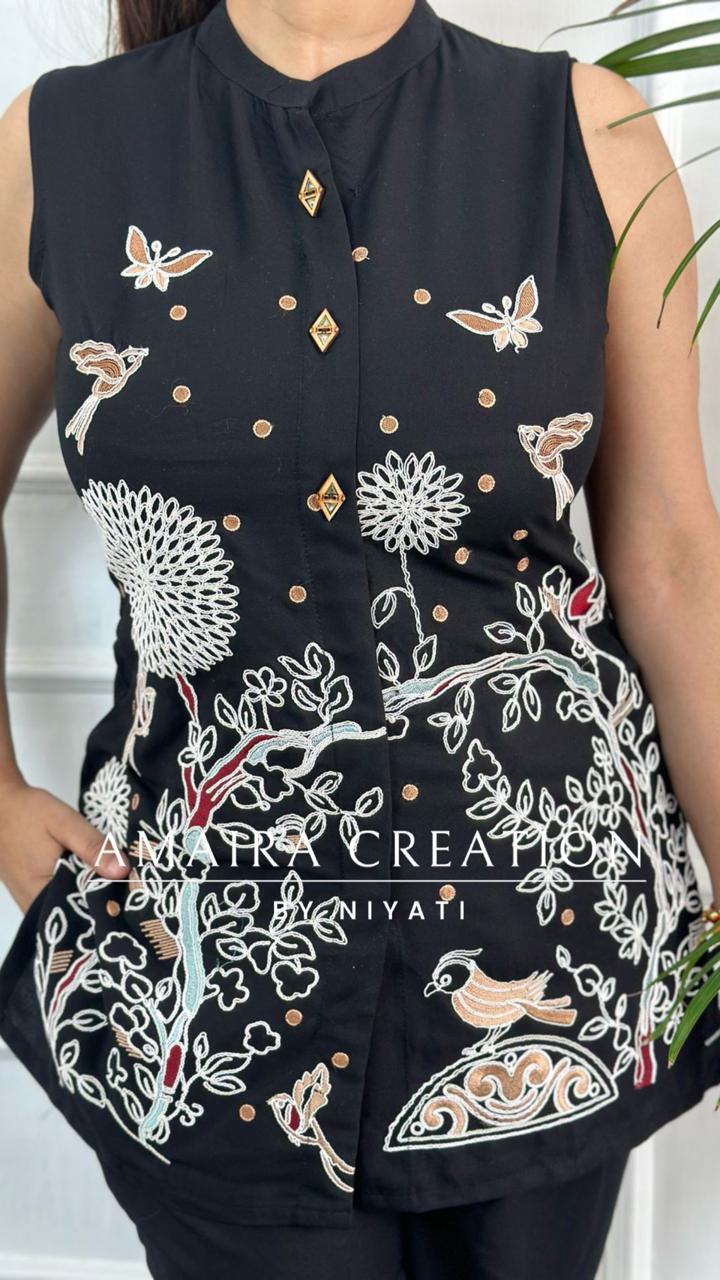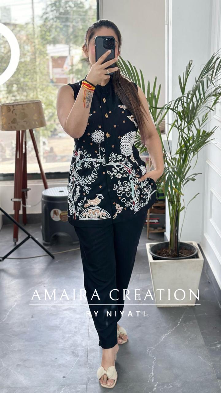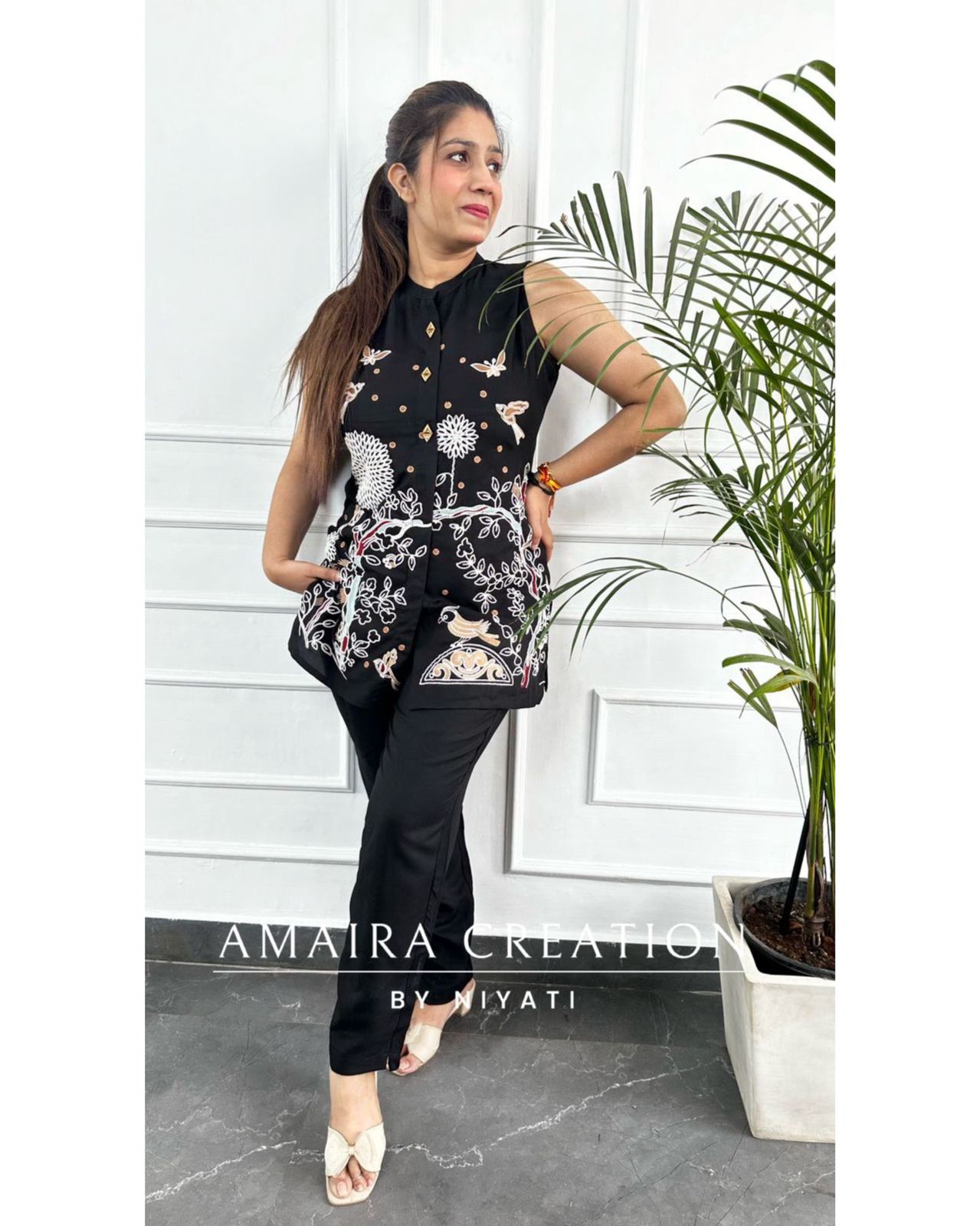 Black Color Reyon Fabric Thread Embroidered Cord Set (17 Inches Sleeves Available)