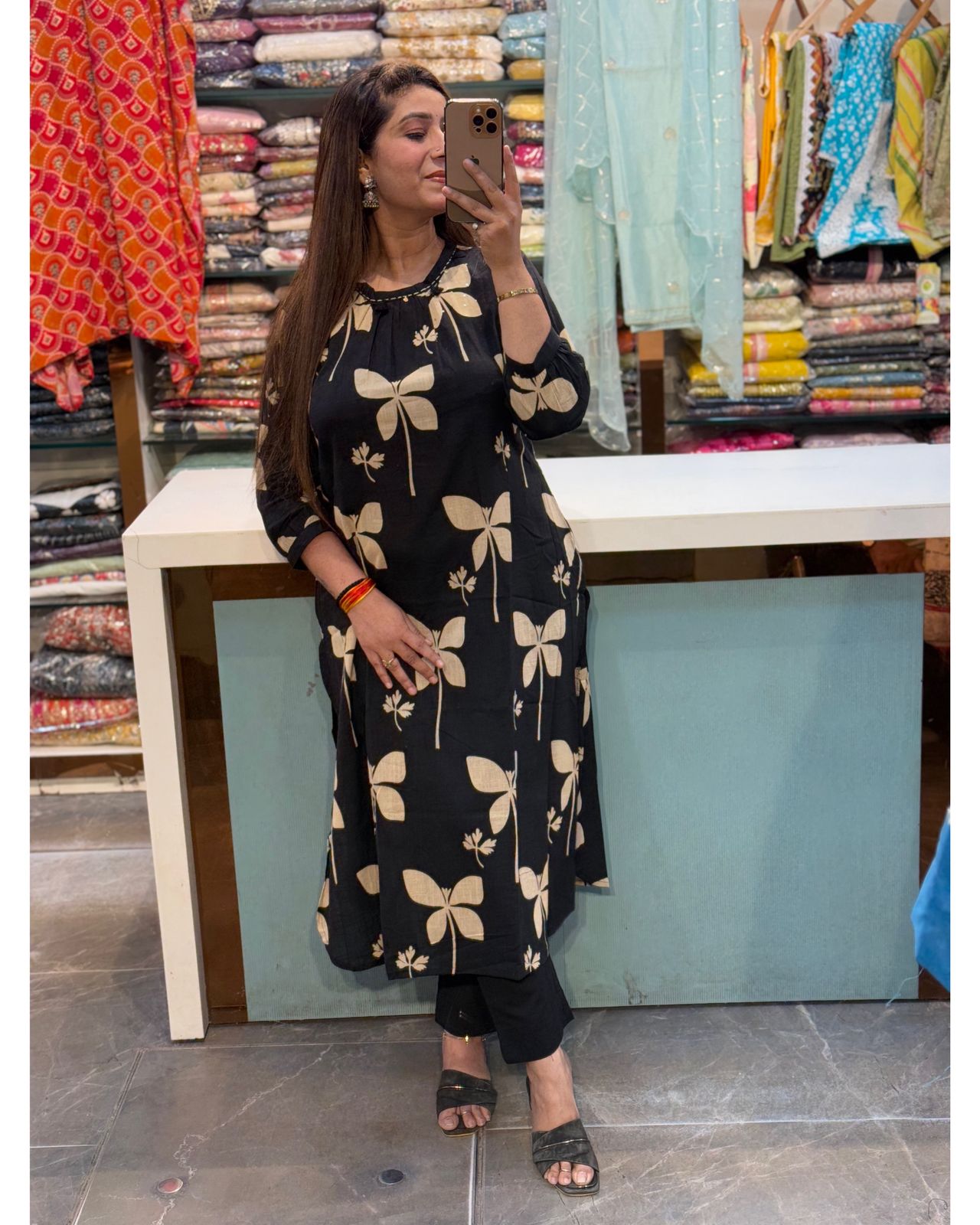 Kurti length 44 Inches (Approx) Pant length 38 Inches (Approx) Pocket Available Dry Clean Only *Disclaimer: Please note that minor color variations may arise due to varying screen resolutions.*