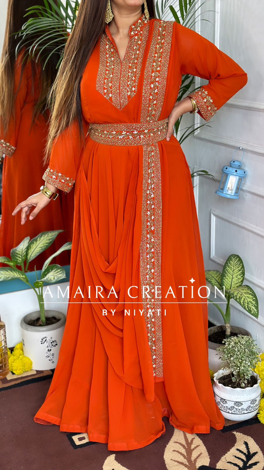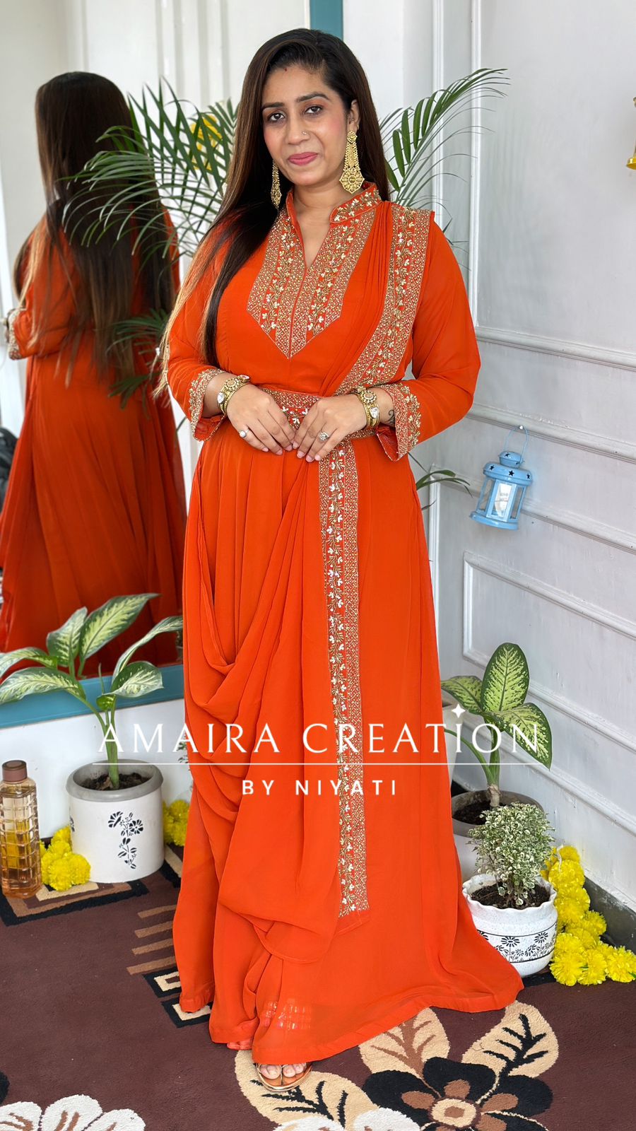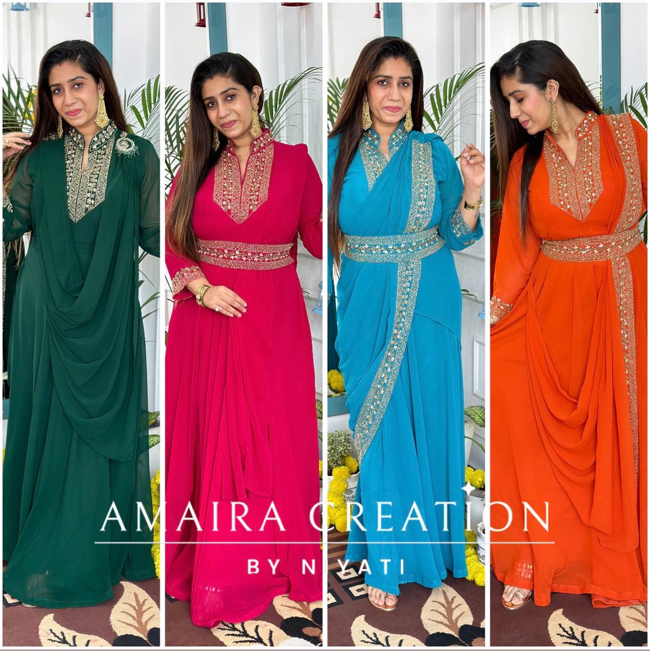 Trendy Drape Dress With (Beautiful Handwork Belt)