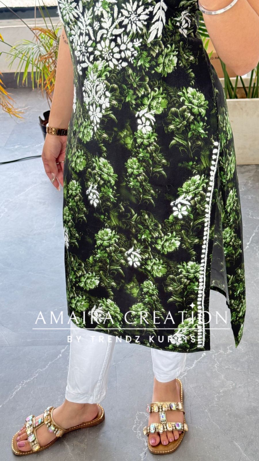 Dimensions: Kurti Length – 44 inches (approx) — a classic mid-length cut that pairs perfectly with white cigarette pants or leggings.