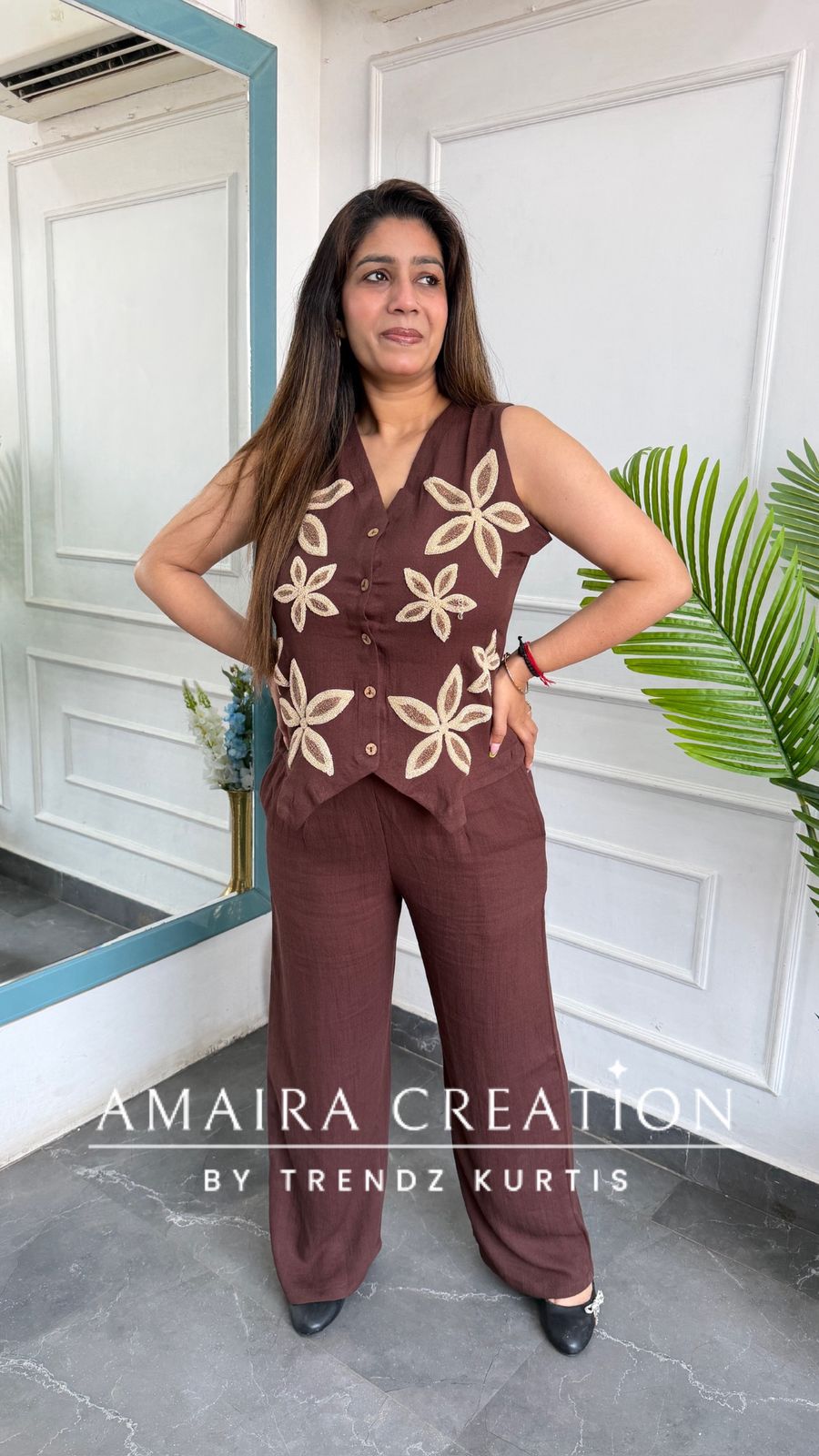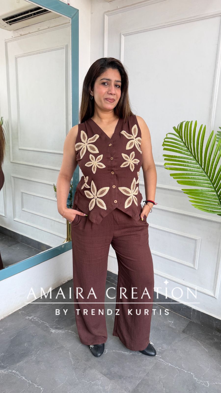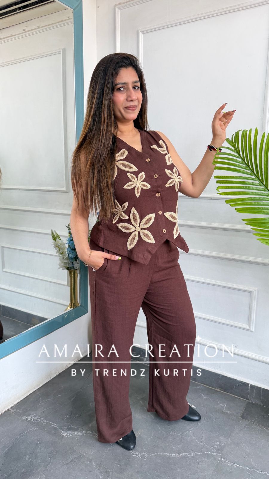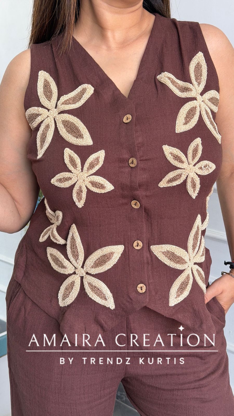 Imported Chocolate Brown Cotton Towel Work Designer Cord Set