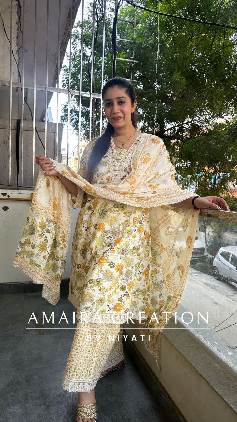 Kurti length 41 Inches (Approx) Pant length 38 Inches (Approx) Dry Clean Only *Disclaimer: Please note that minor color variations may arise due to varying screen resolutions.*