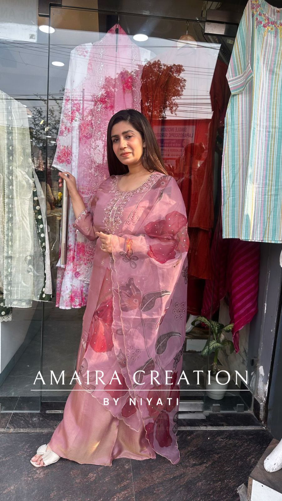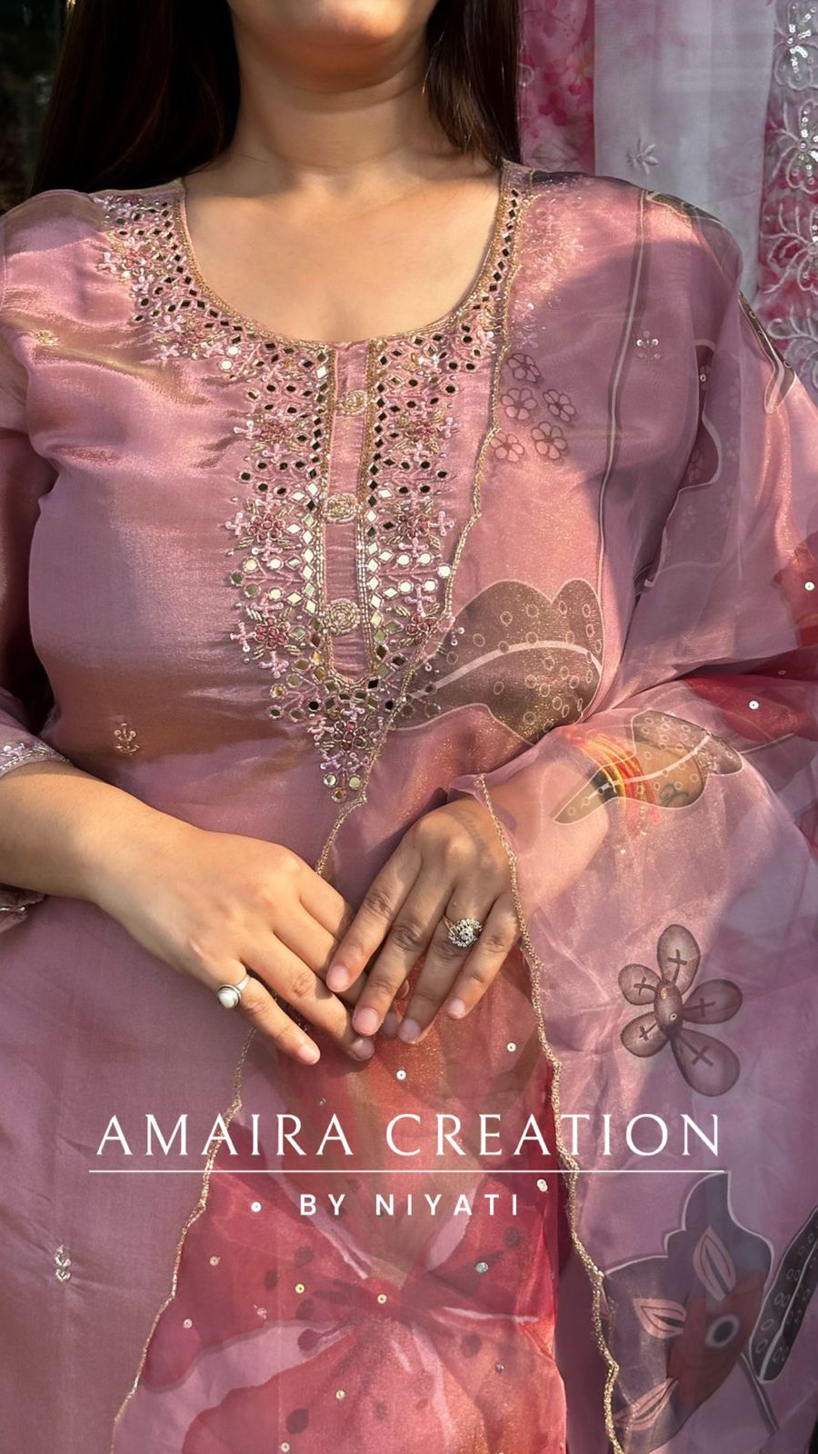 Mauve Glass Tissue Plazo Set With Organza Dupatta