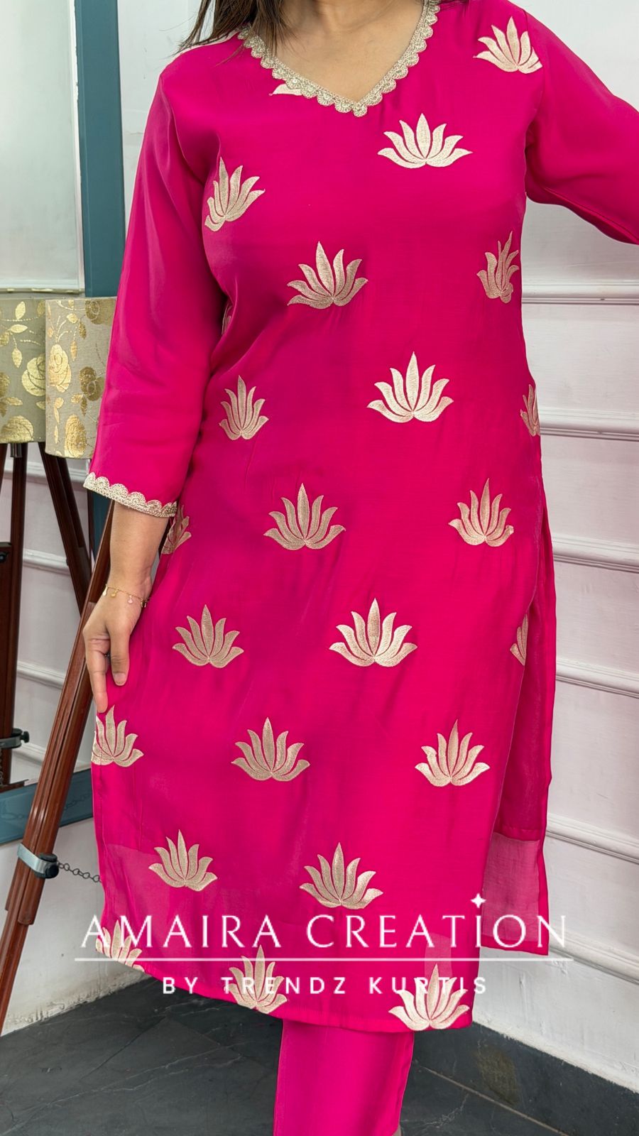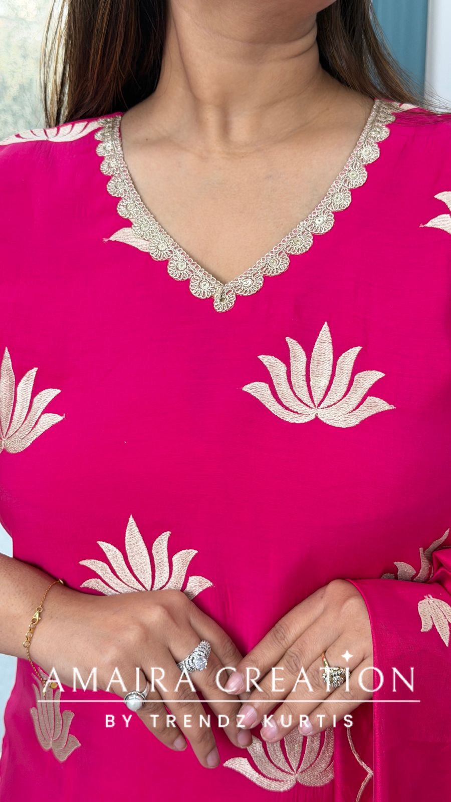 Muslin Fabric Pink Color Thread Embroidered Pant Set