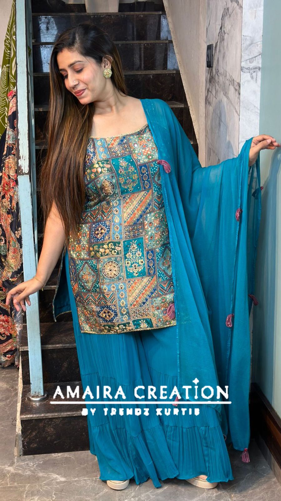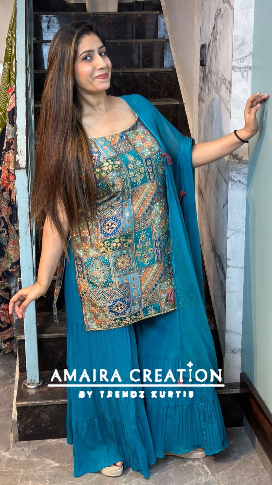 Premium Brocade Banarasi Sharara Set( 9 inches sleeves available)