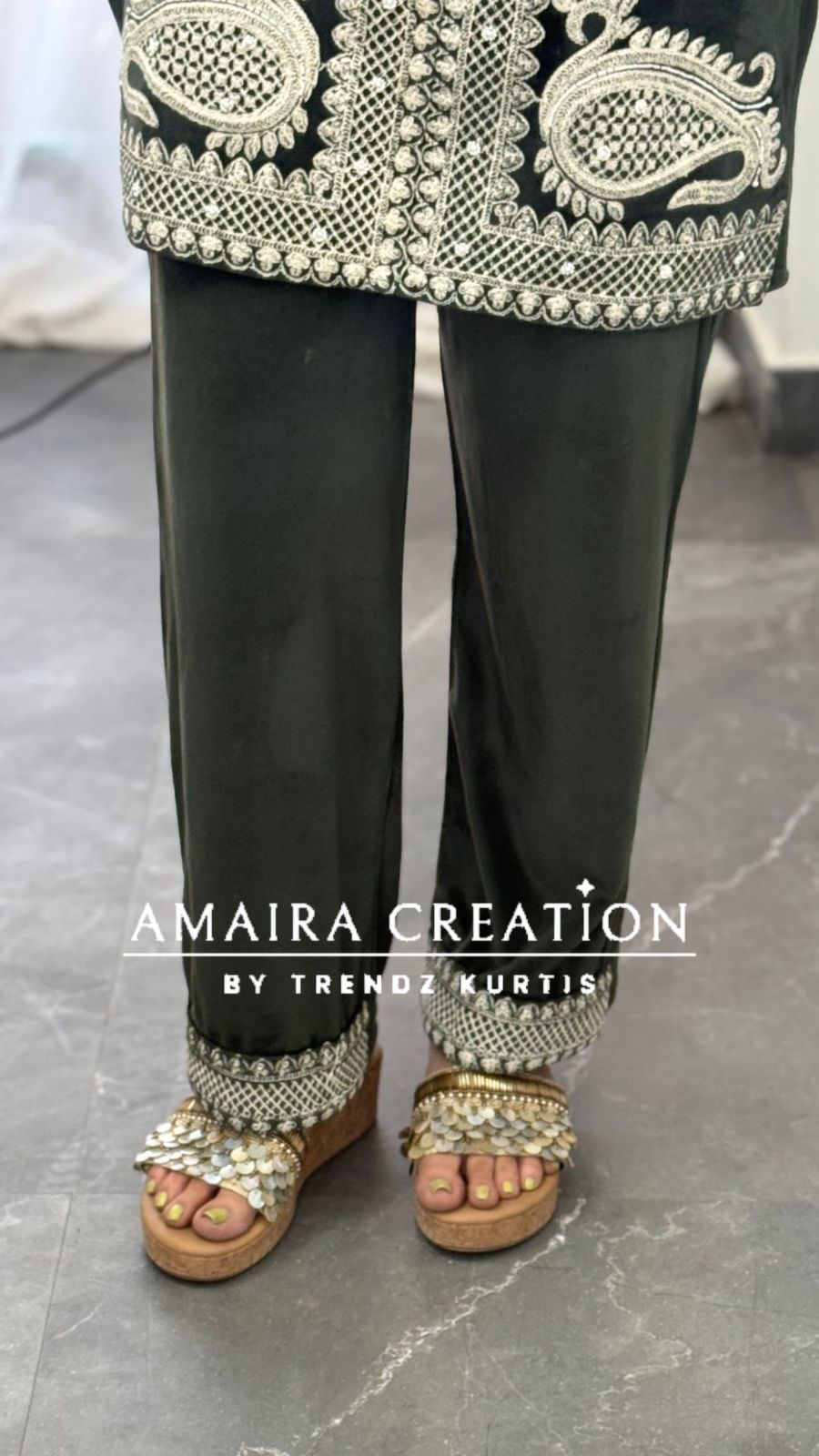 Premium Cauterised Woolen Olive Green Embroidery Cord set