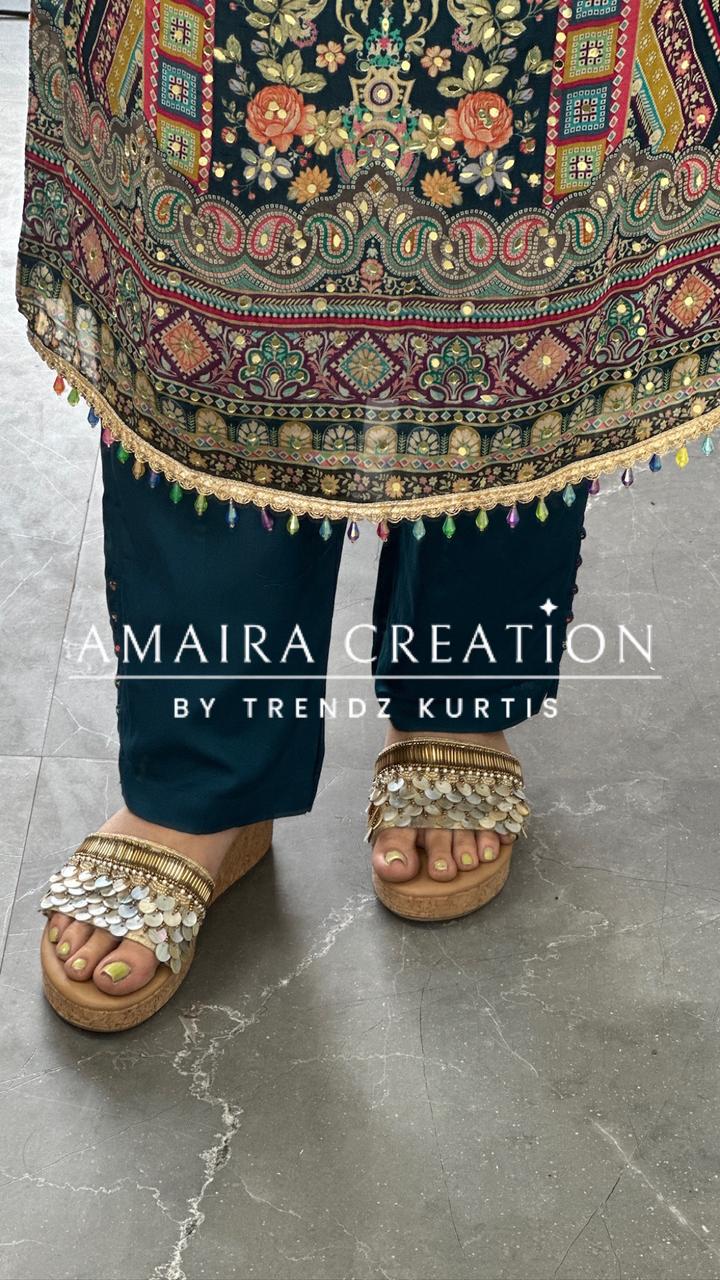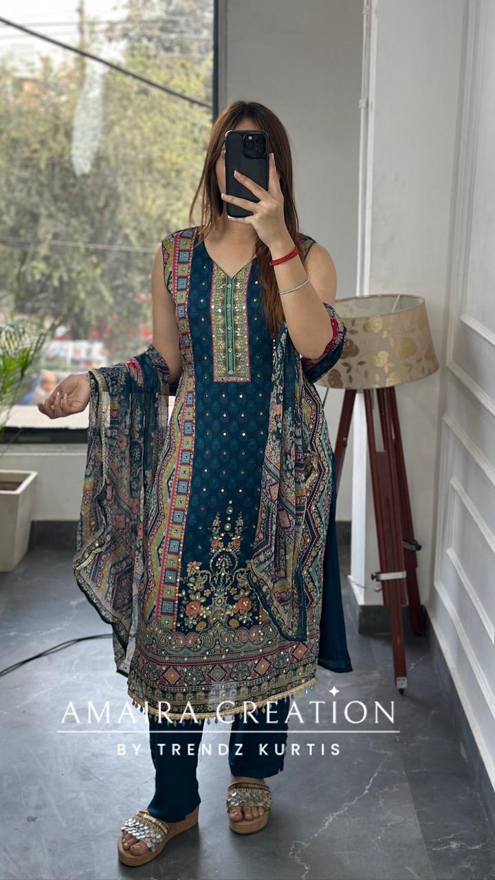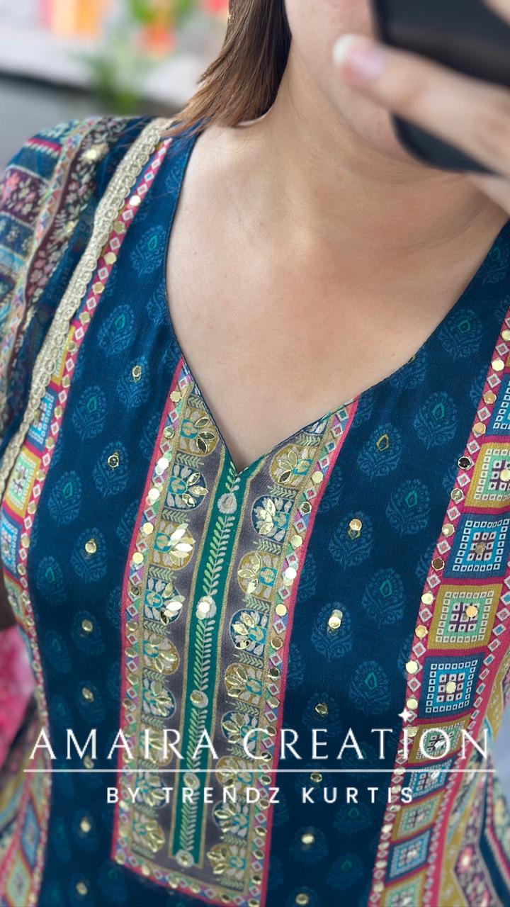 Kurti length 44 Inches (Approx) Pant length 39 Inches (Approx) Pocket Available Dry Clean Only *Disclaimer: Please note that minor color variations may arise due to varying screen resolutions.*