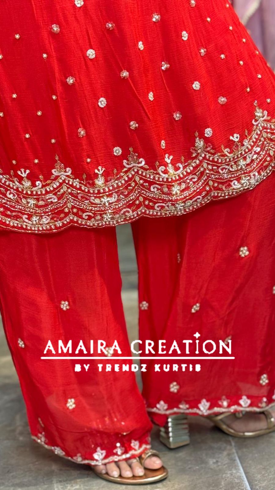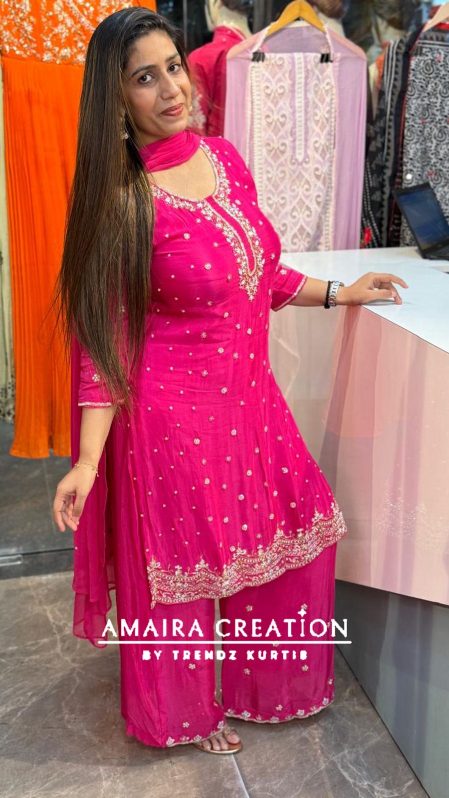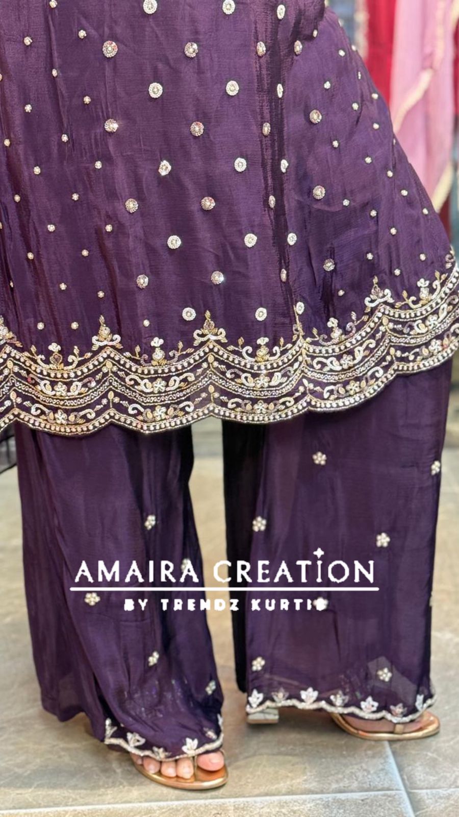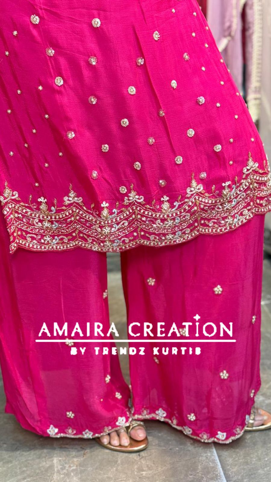 Premium Chinnon Beautiful Hand Work Plazo Set