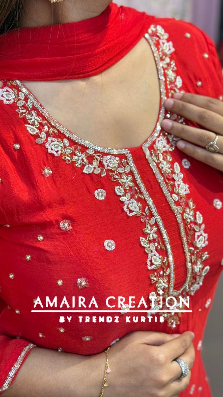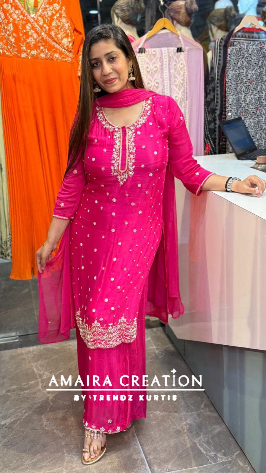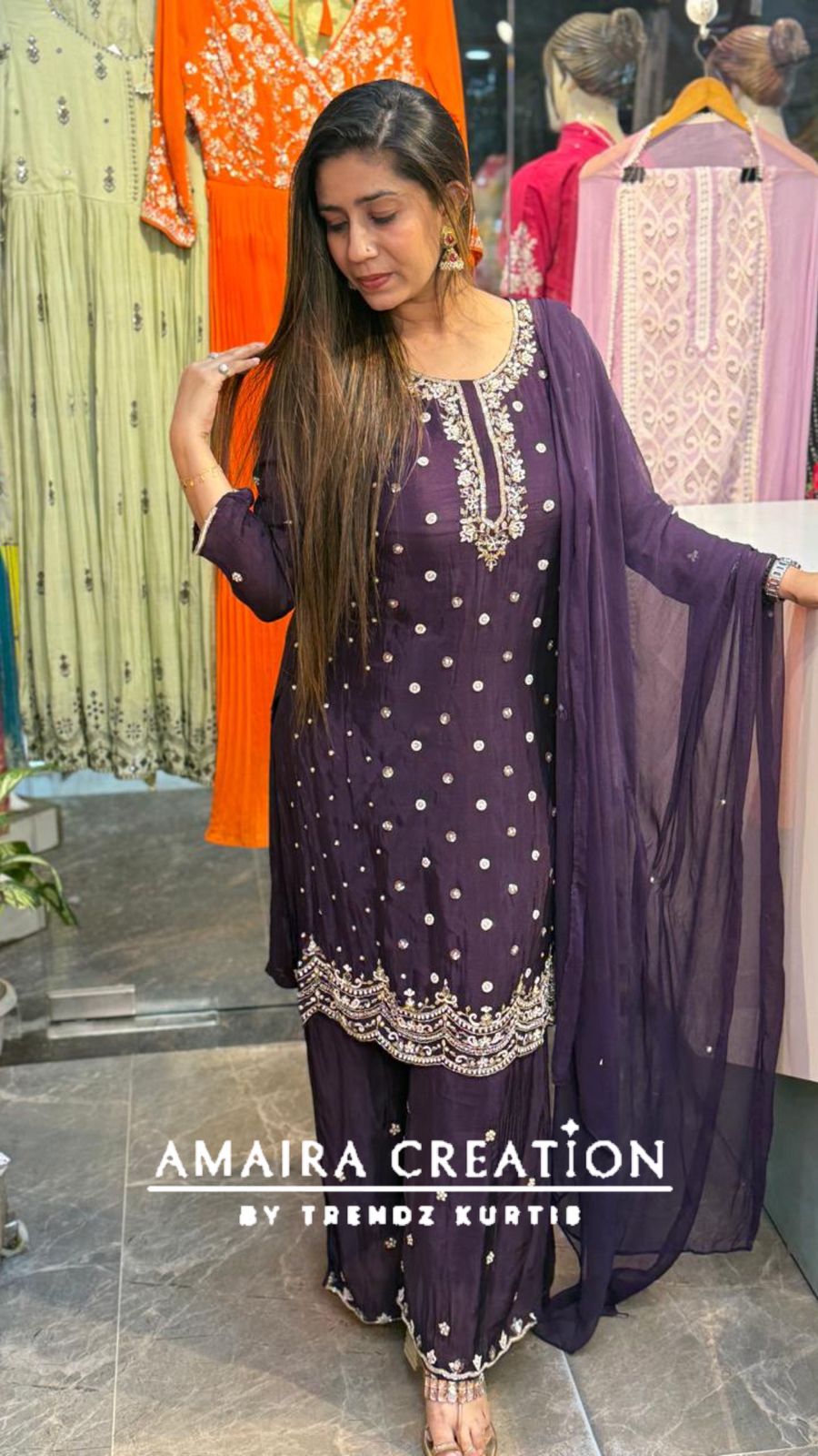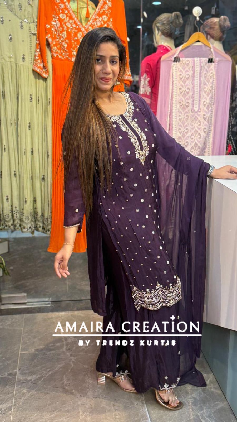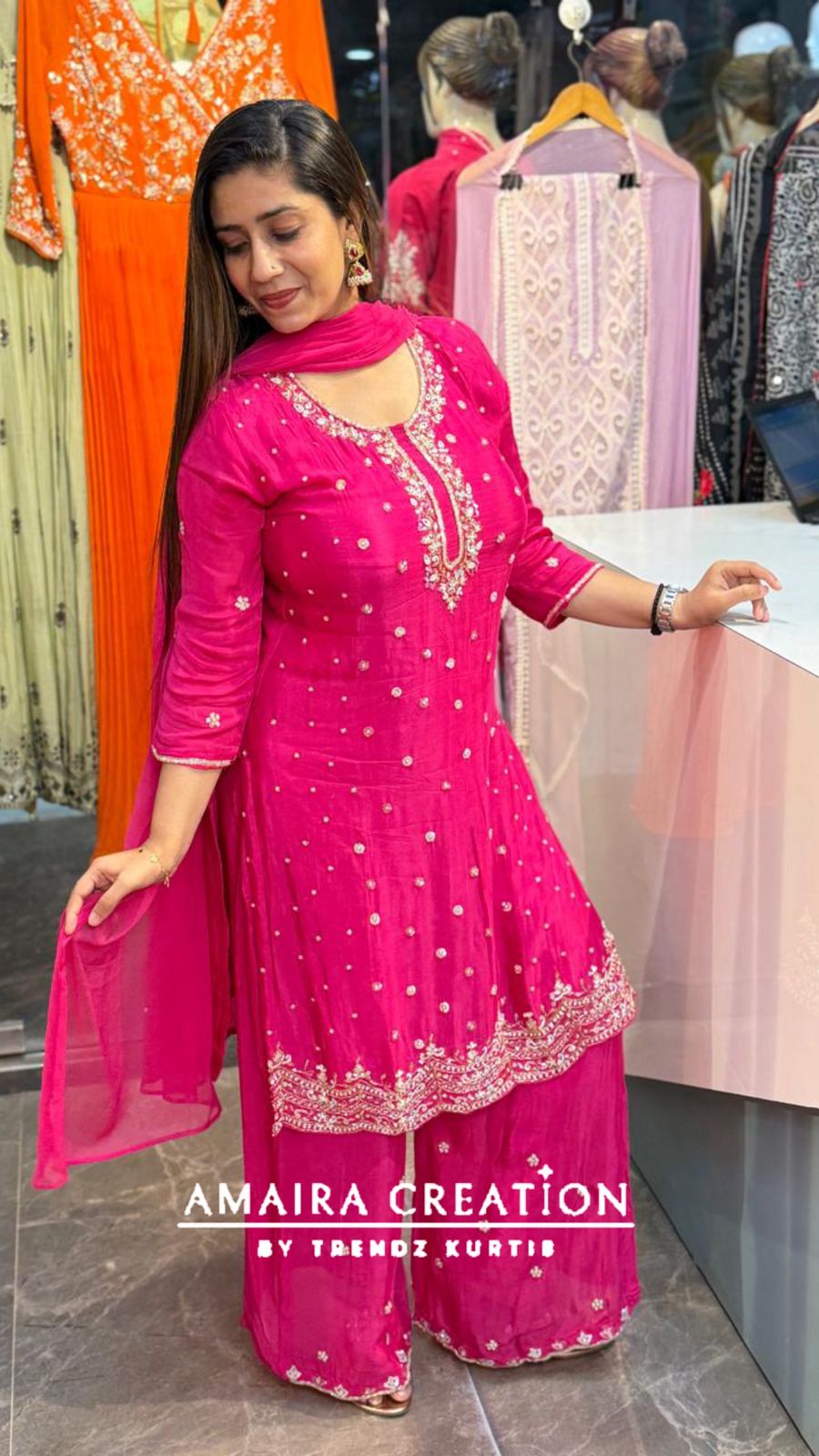 Premium Chinnon Beautiful Hand Work Plazo Set