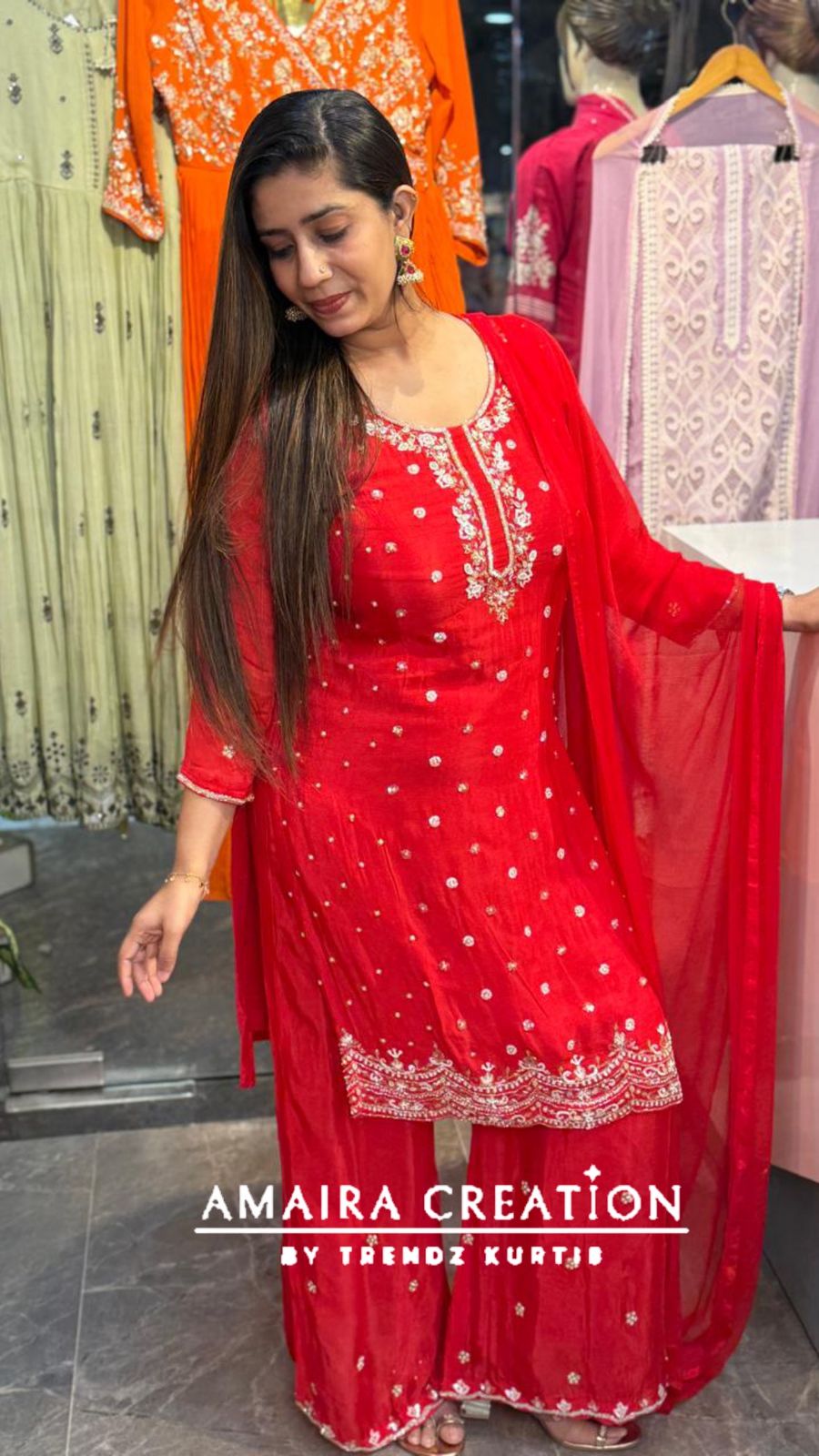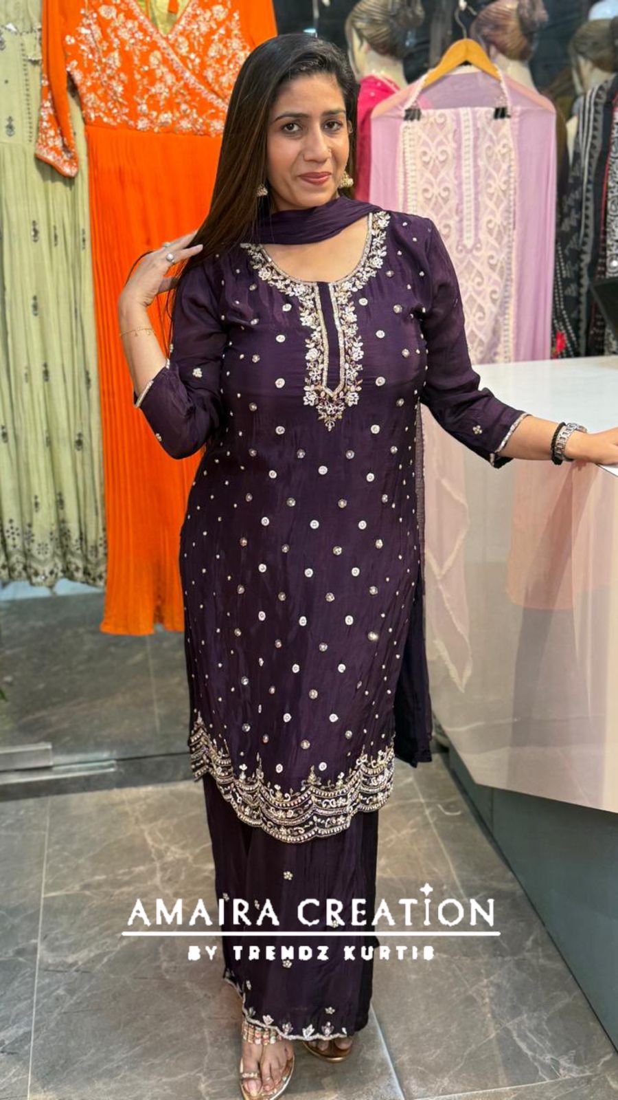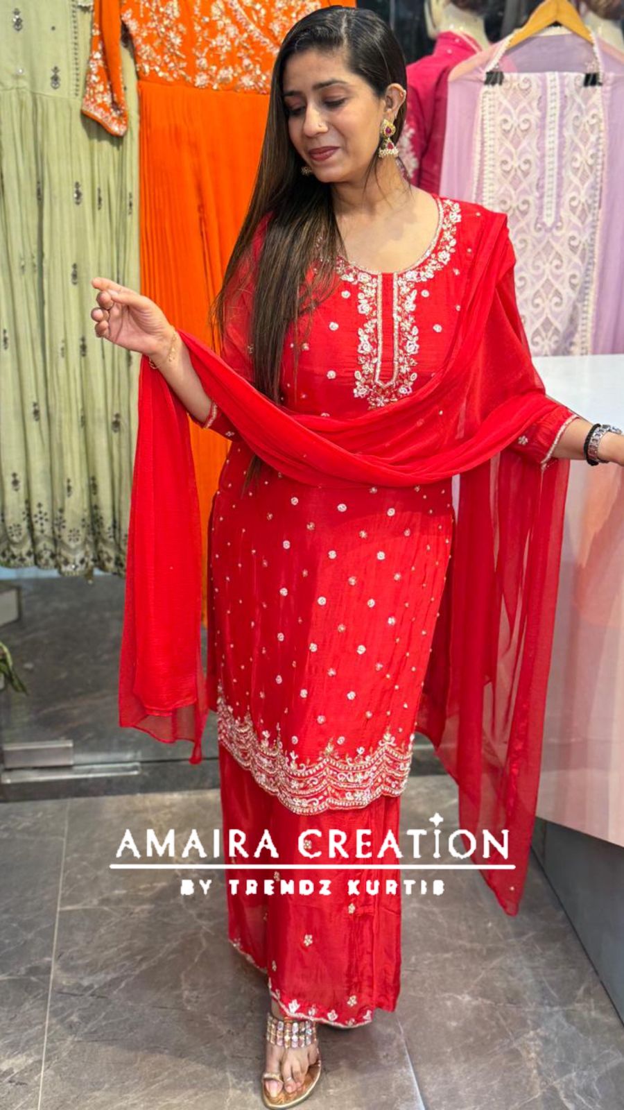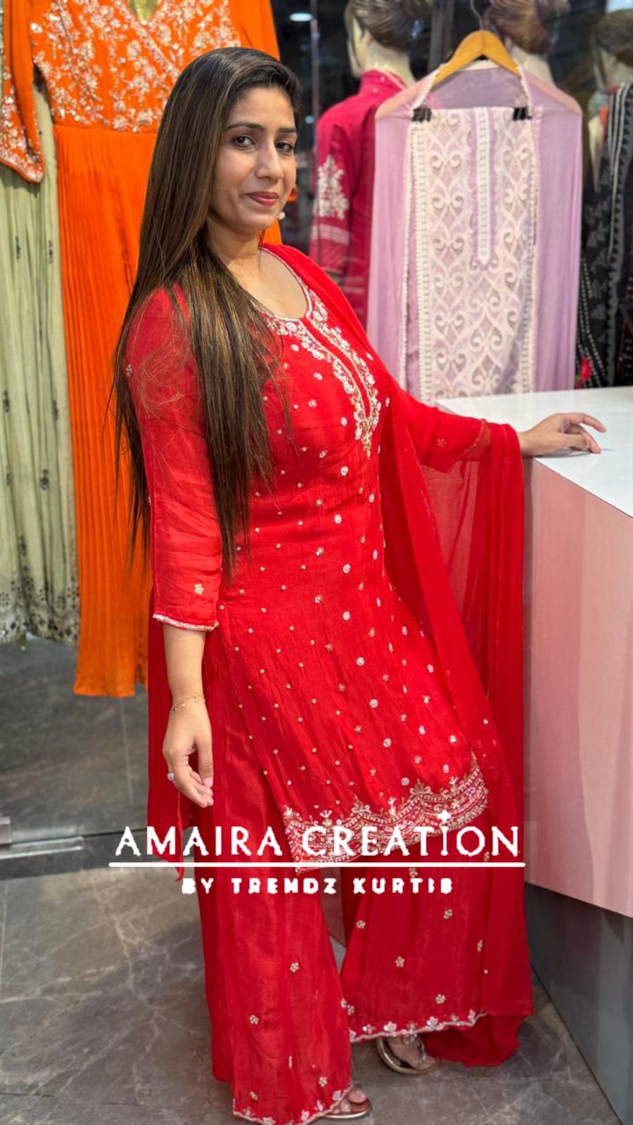 Premium Chinnon Beautiful Hand Work Plazo Set