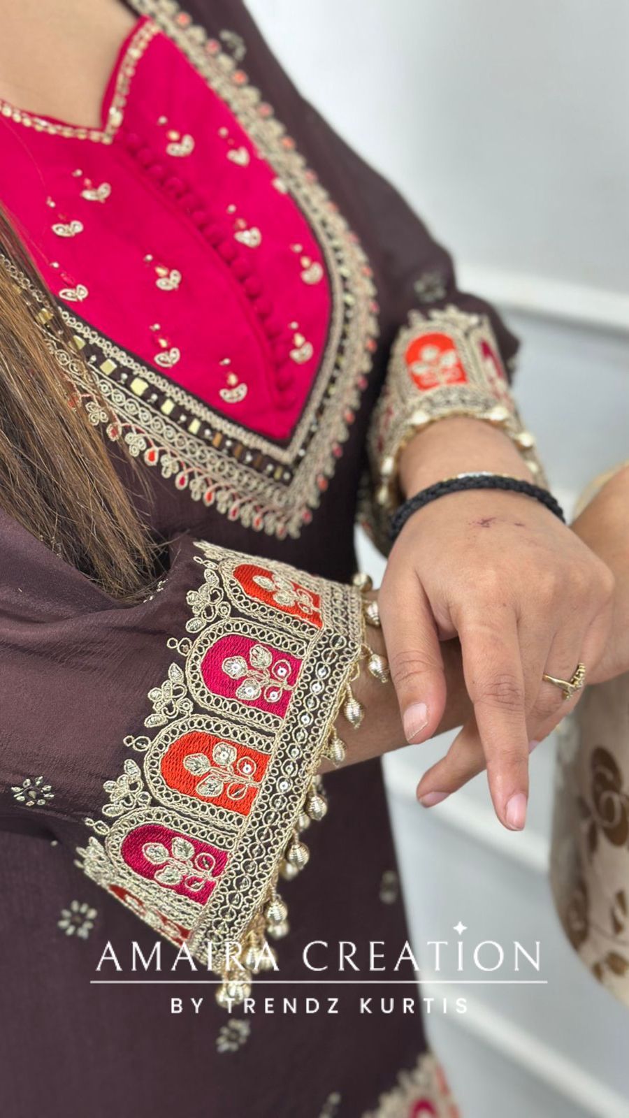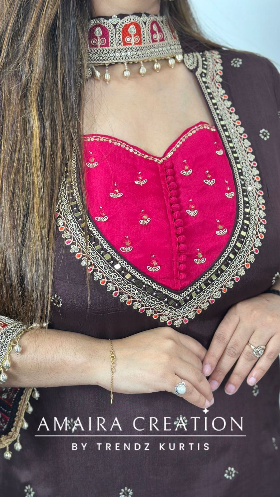 Premium Chinnon Brown Colour Burster Neck Design Full Ghera Divider Set
