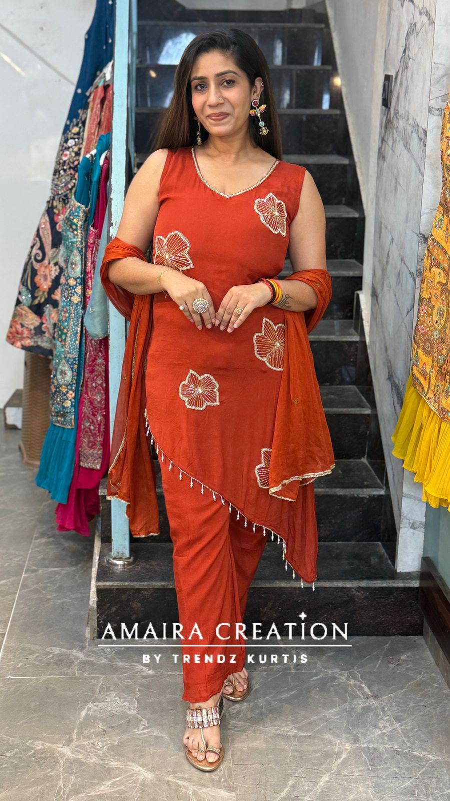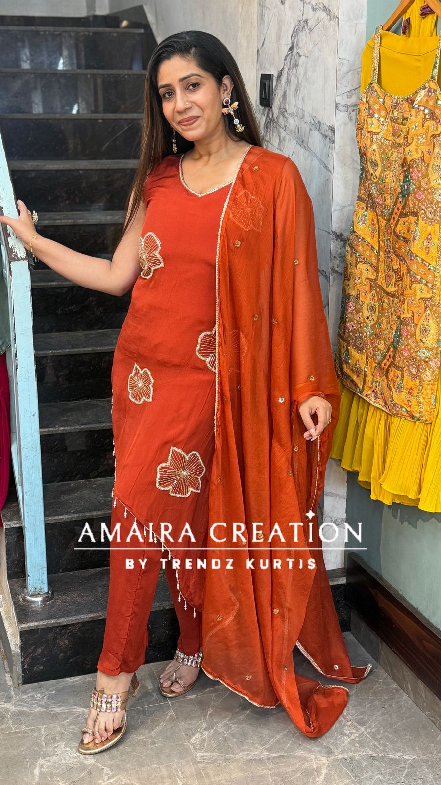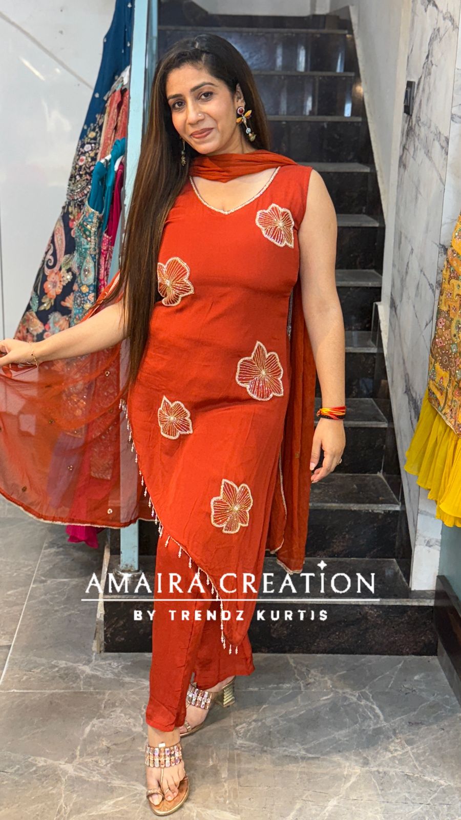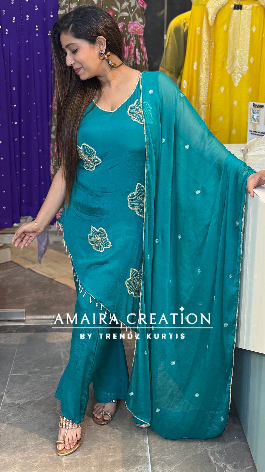 Kurti length 35 Inches (Approx) Pant length 37 Inches (Approx) Dry Clean Only *Disclaimer: Please note that minor color variations may arise due to varying screen resolutions.*