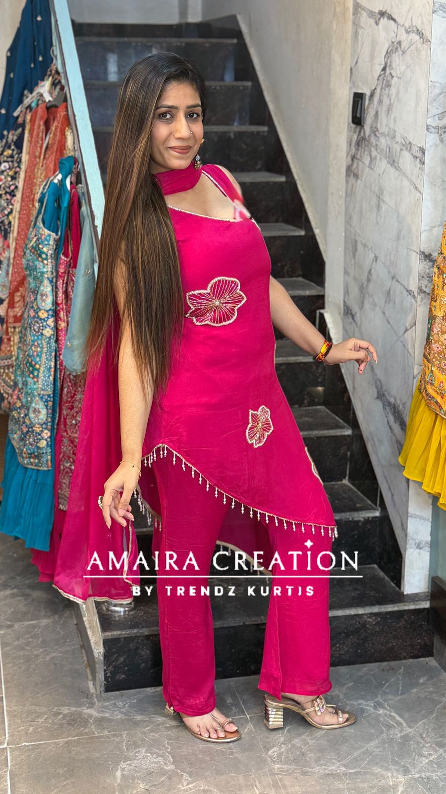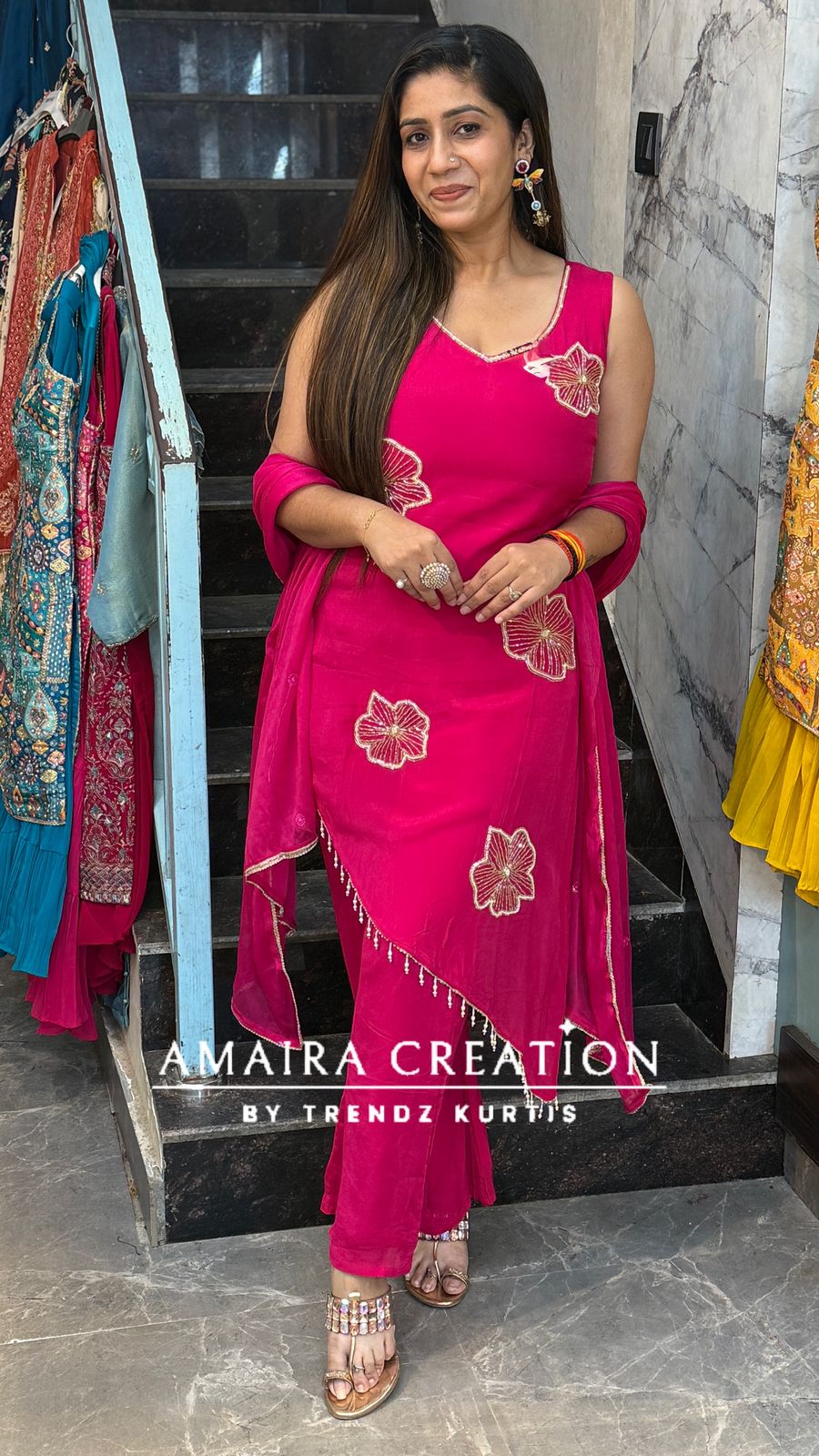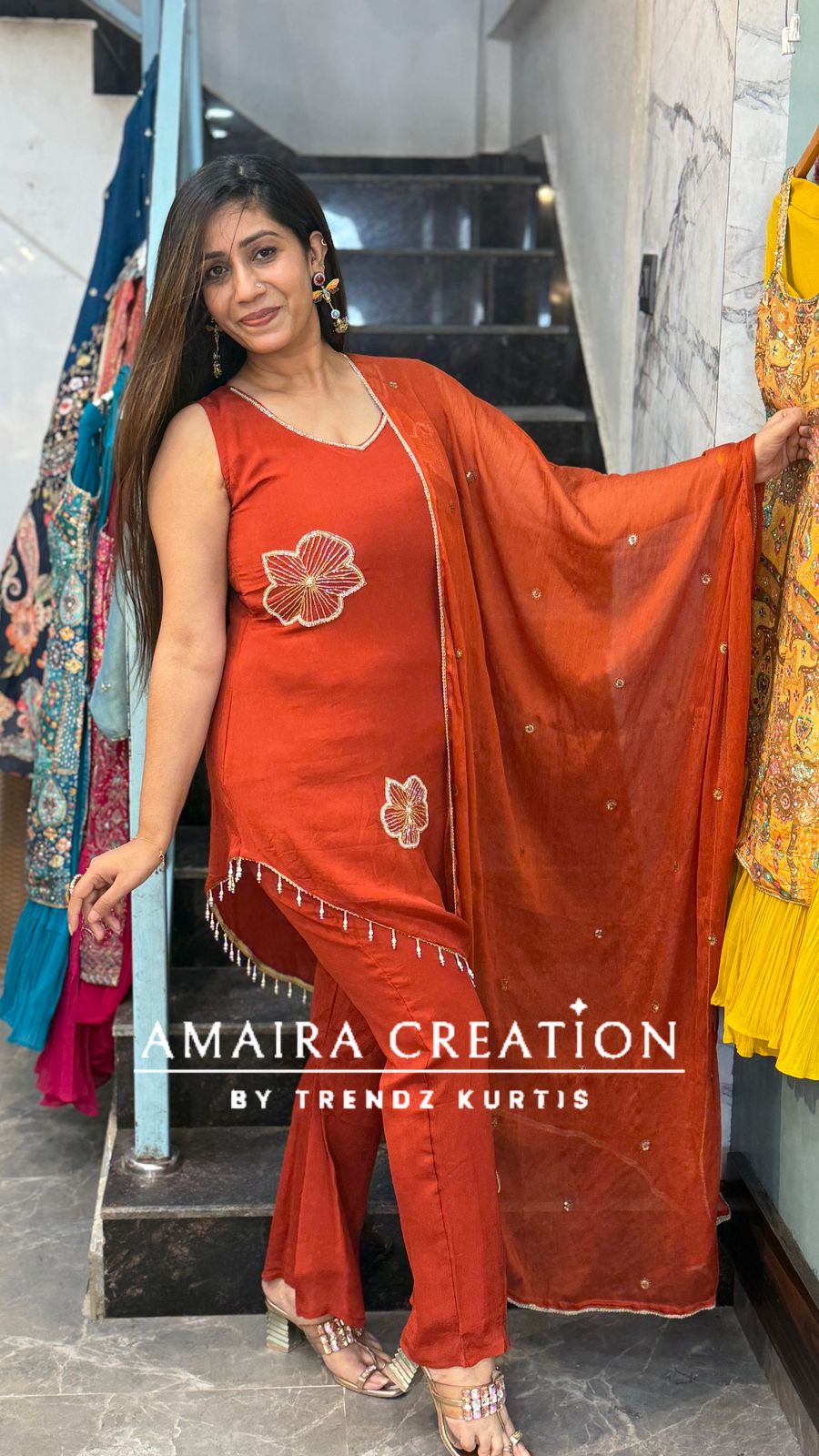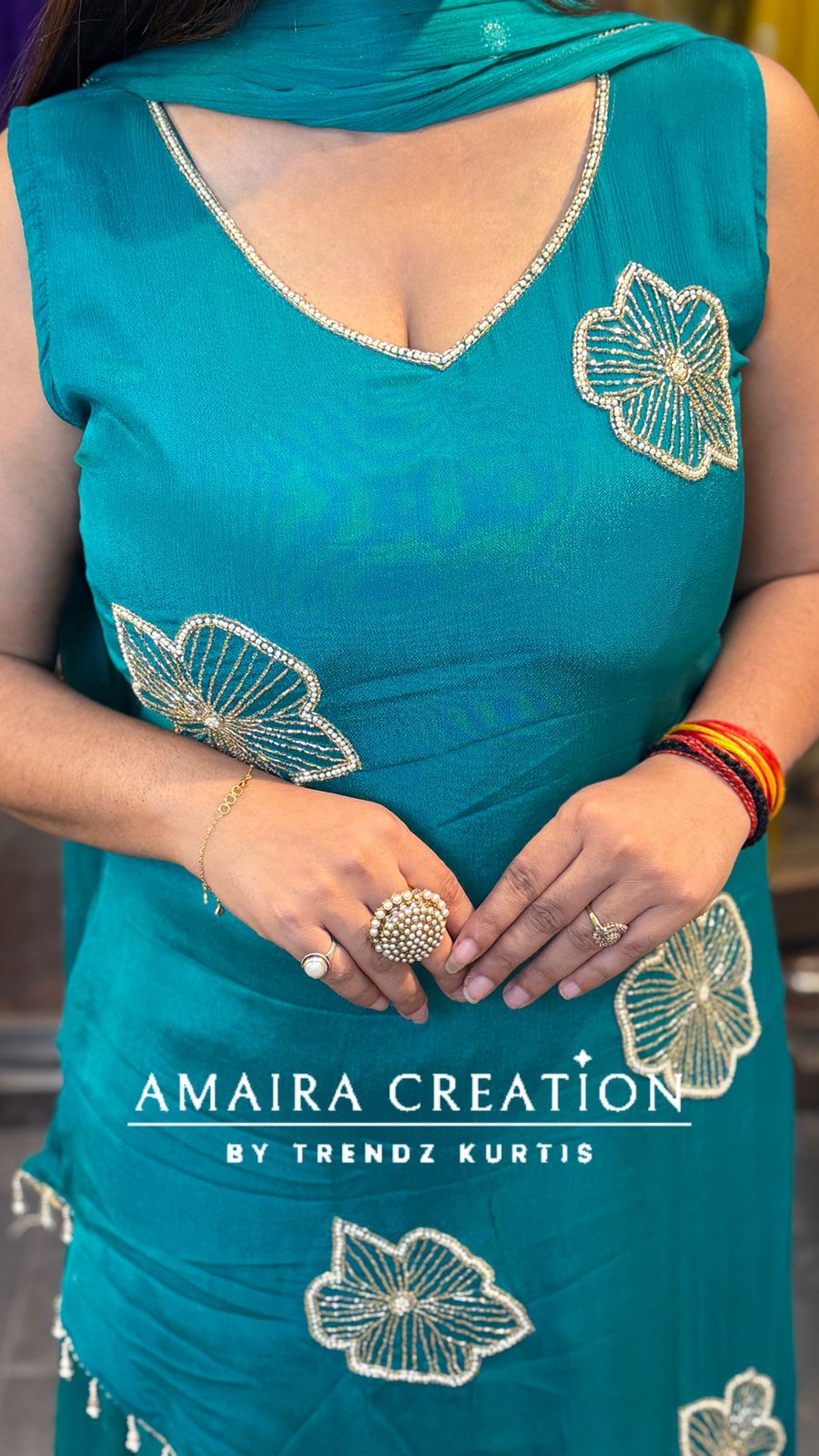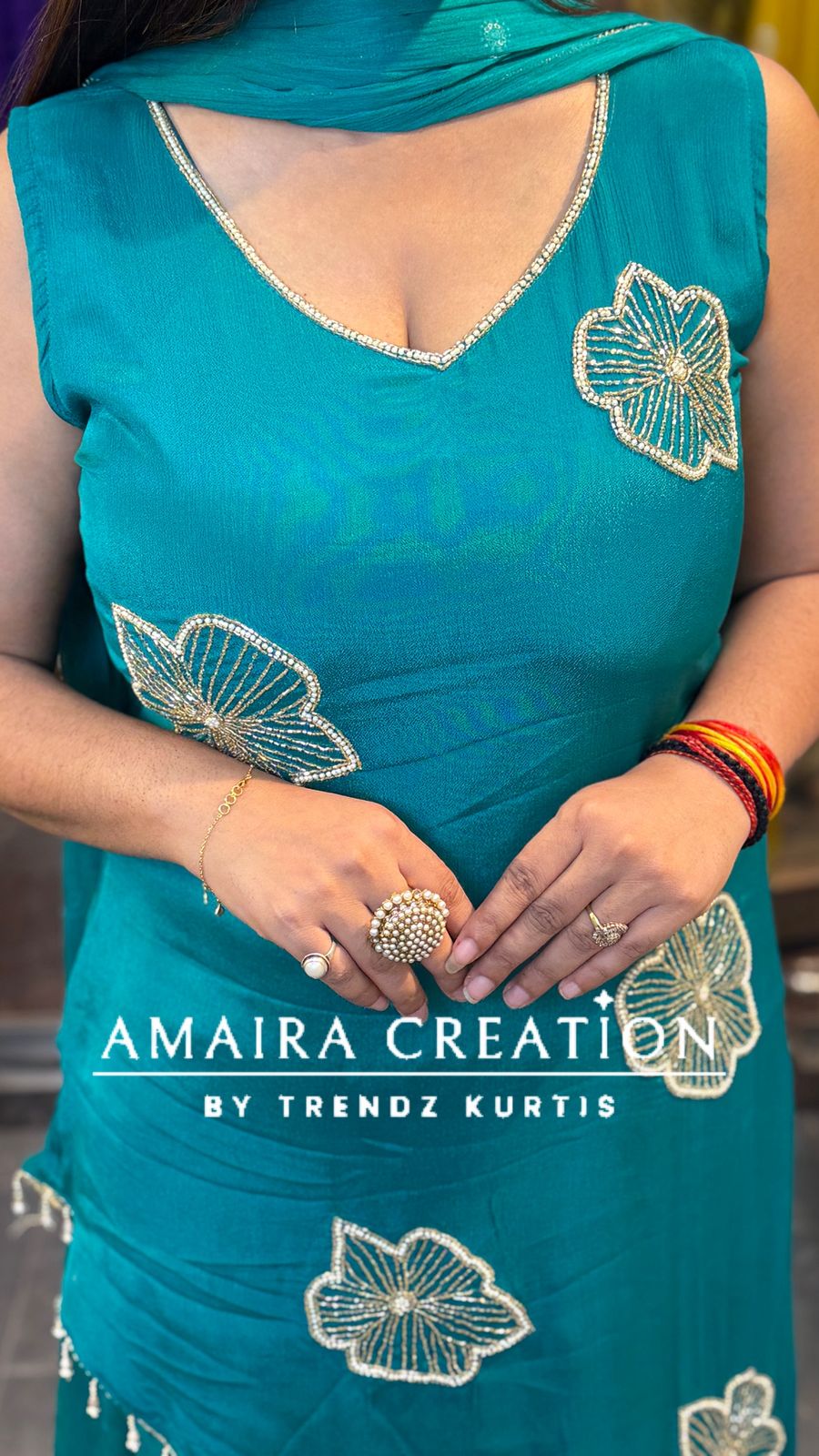 Kurti length 35 Inches (Approx) Pant length 37 Inches (Approx) Dry Clean Only *Disclaimer: Please note that minor color variations may arise due to varying screen resolutions.*
