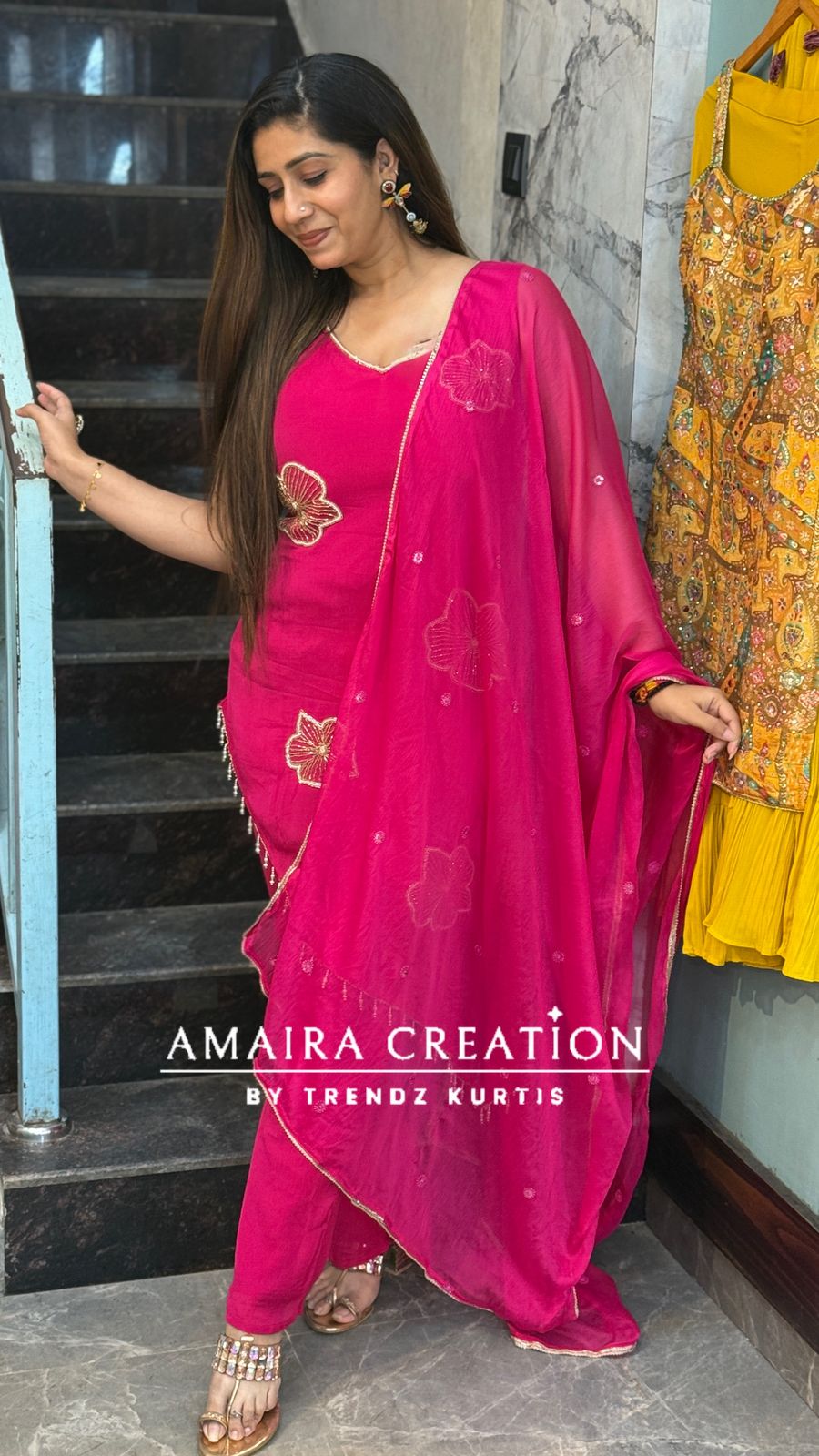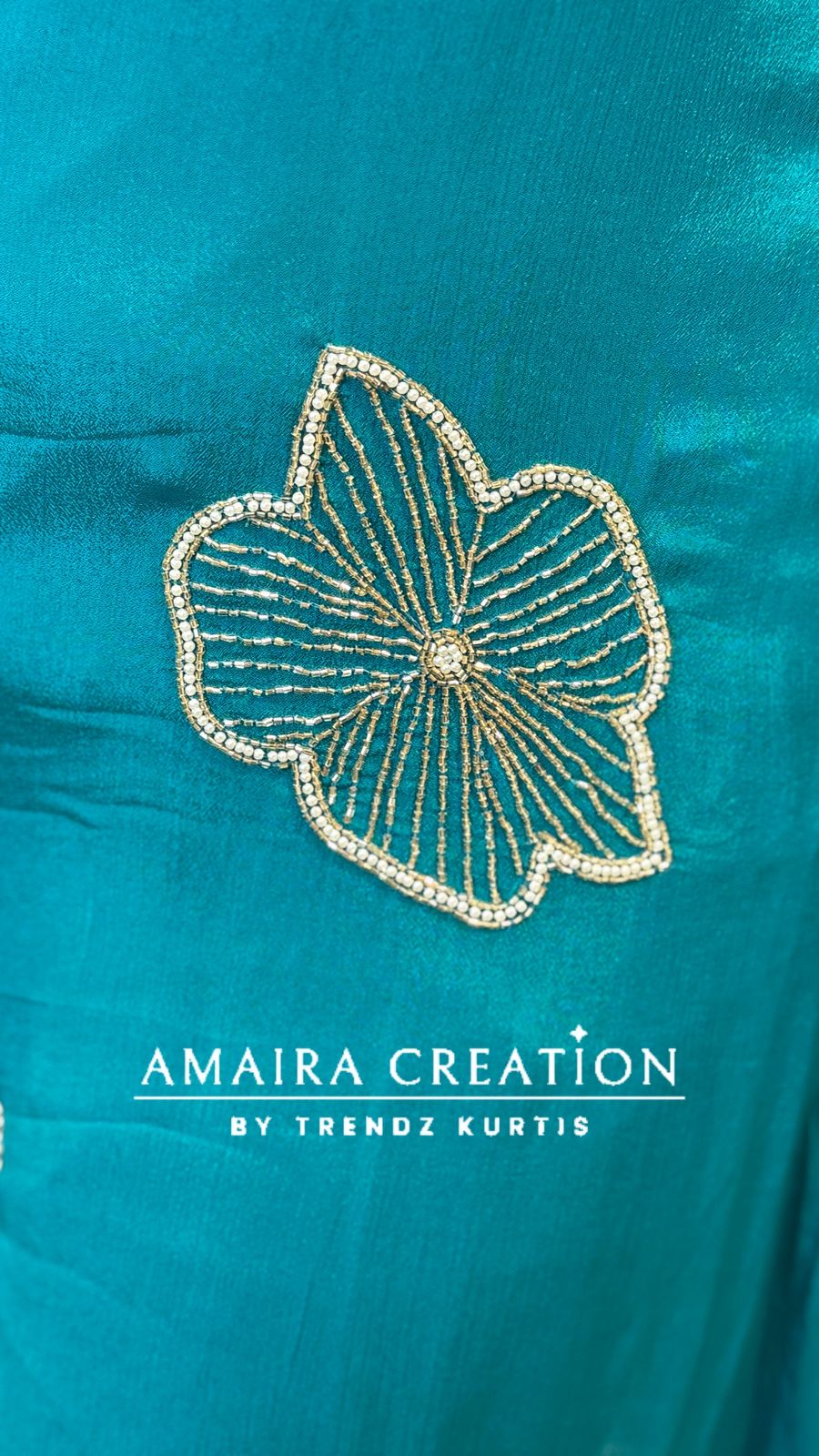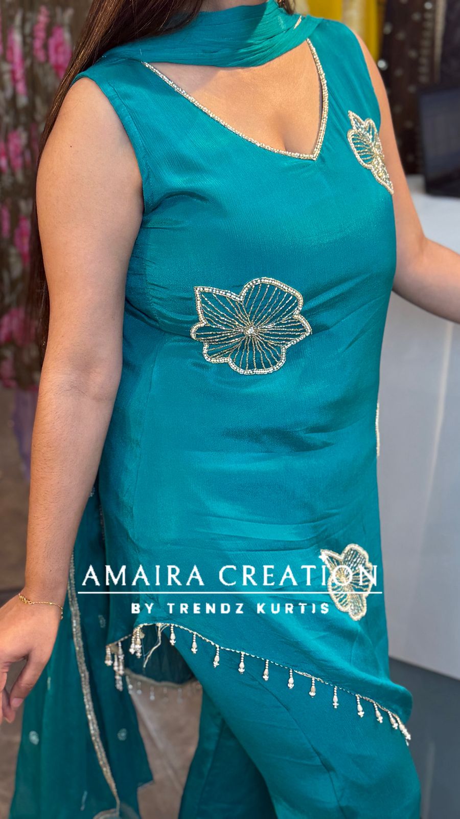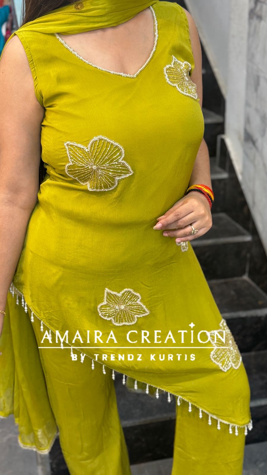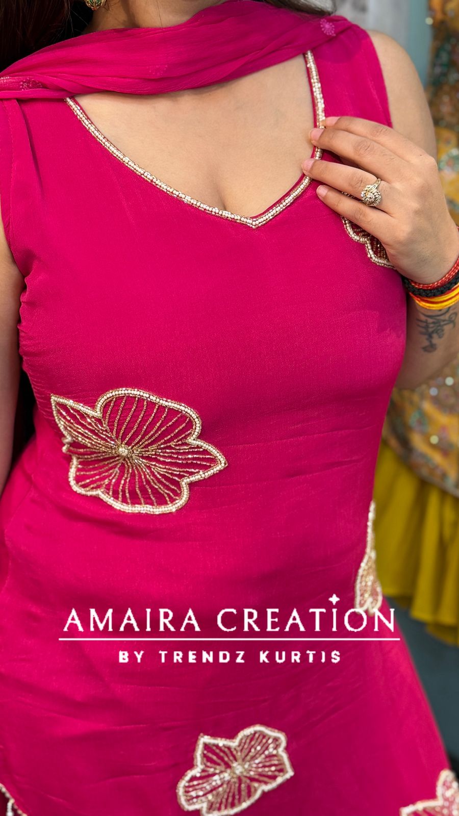 Kurti length 35 Inches (Approx) Pant length 37 Inches (Approx) Dry Clean Only *Disclaimer: Please note that minor color variations may arise due to varying screen resolutions.*