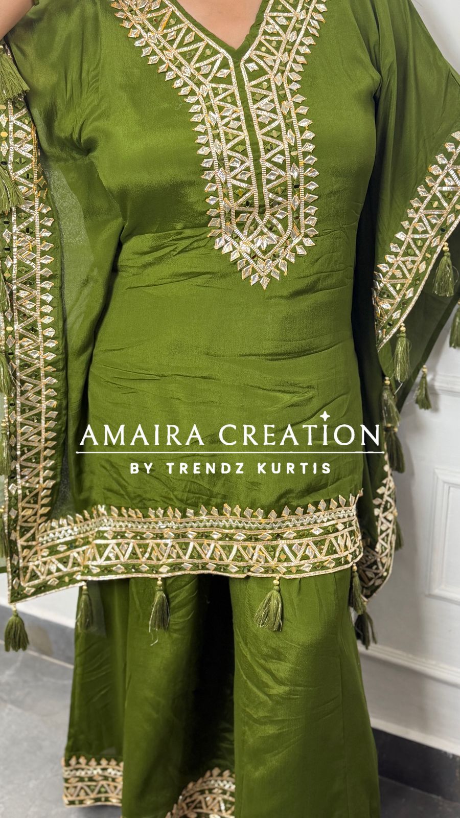 Kurti length 36 Inches (Approx) Pant length 39 Inches (Approx) Dry Clean Only *Disclaimer: Please note that minor color variations may arise due to varying screen resolutions.*