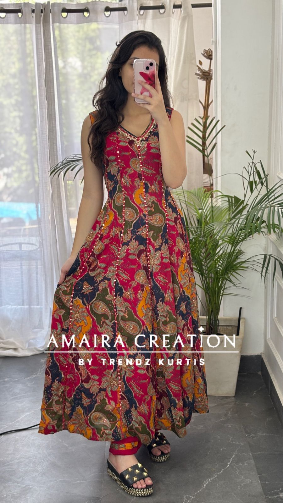 Premium Chinnon Multi Anarkali Pant Set(17 inches sleeves available)