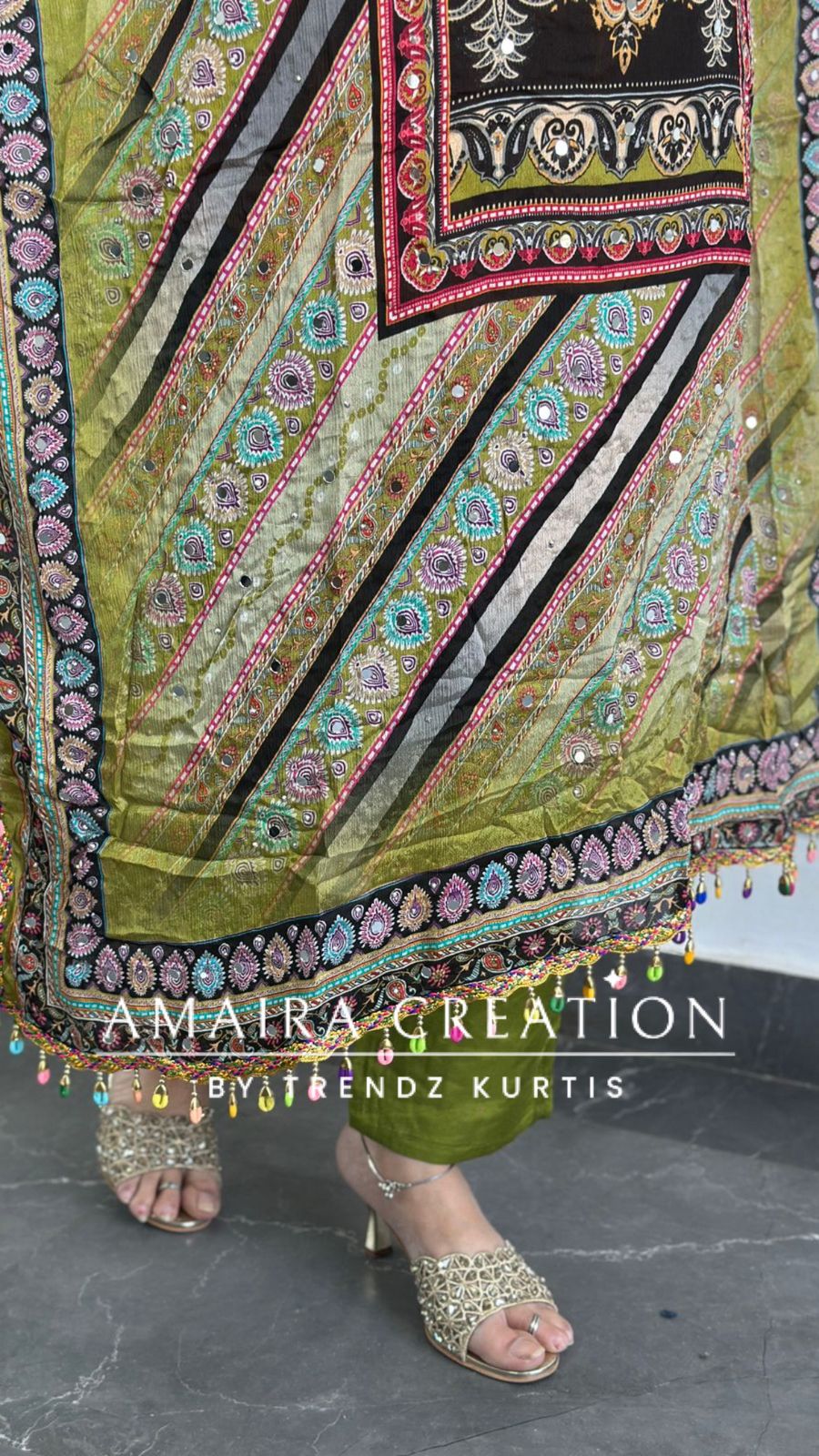 Premium Chinnon Parrot Green Colour Kaftan Set