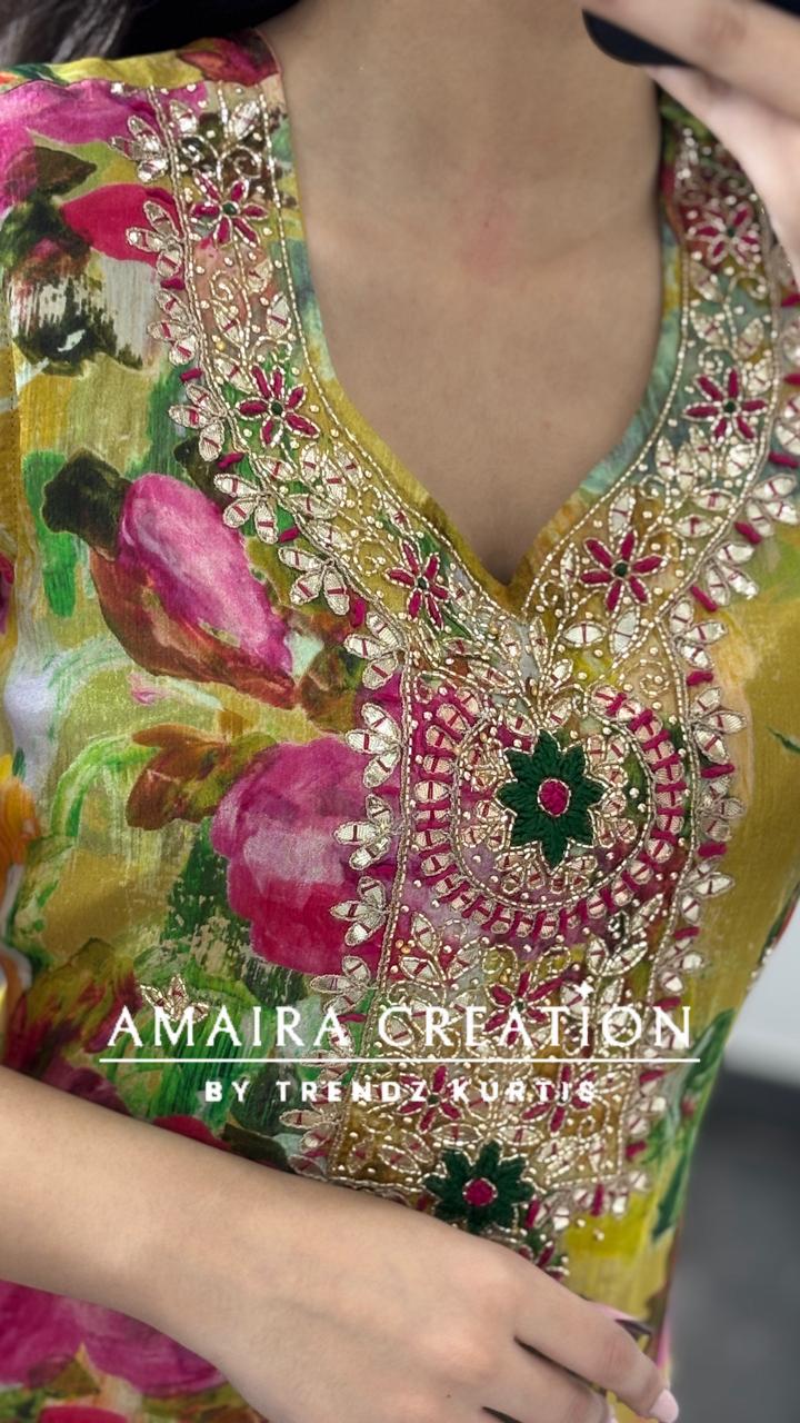 Premium Chinnon Vibrant Floral Pant Set(16 inches sleeves available )