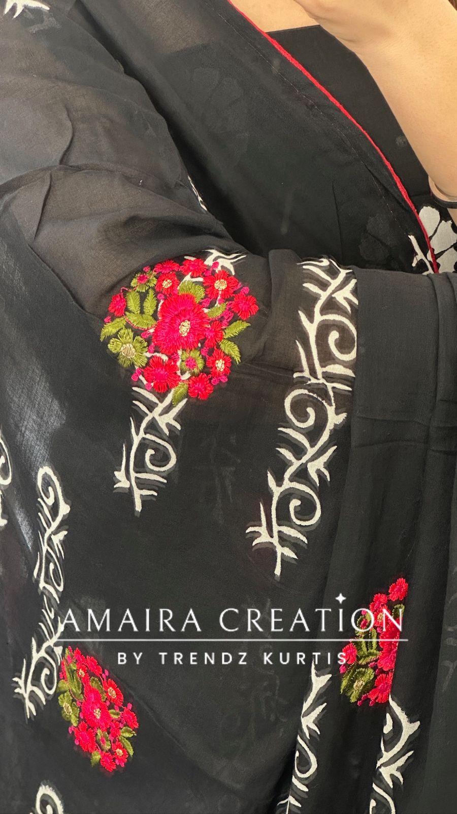 Premium Cotton Black Color With Mirror Work & Full Thread Embroidered Detailing Dupatta