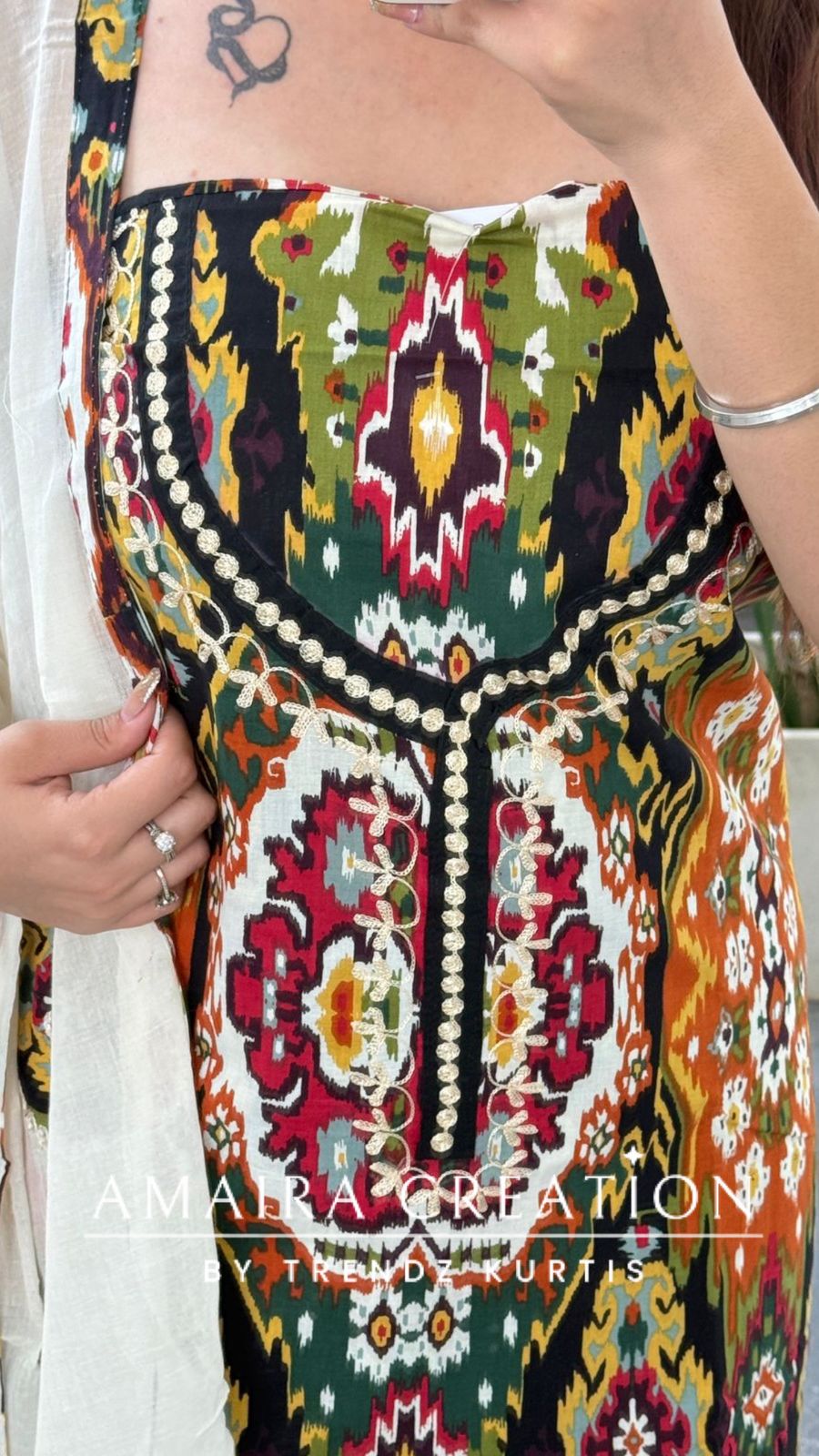 Premium Cotton Ikkat Print Black Colour Unstitched Suit