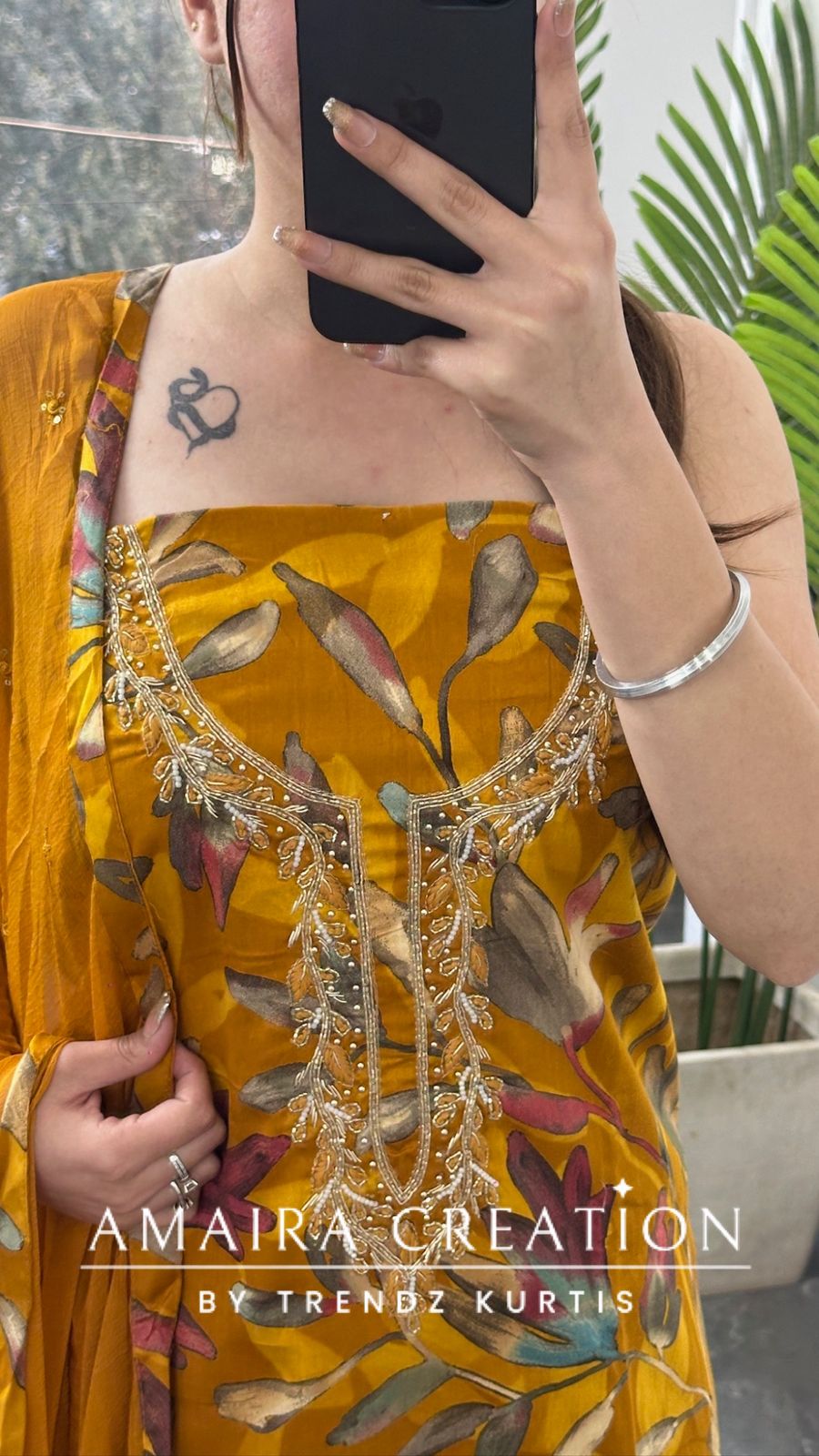 Premium Cotton Mustard Colour Floral Print Unstitch Suit With Chiffon Dupatta