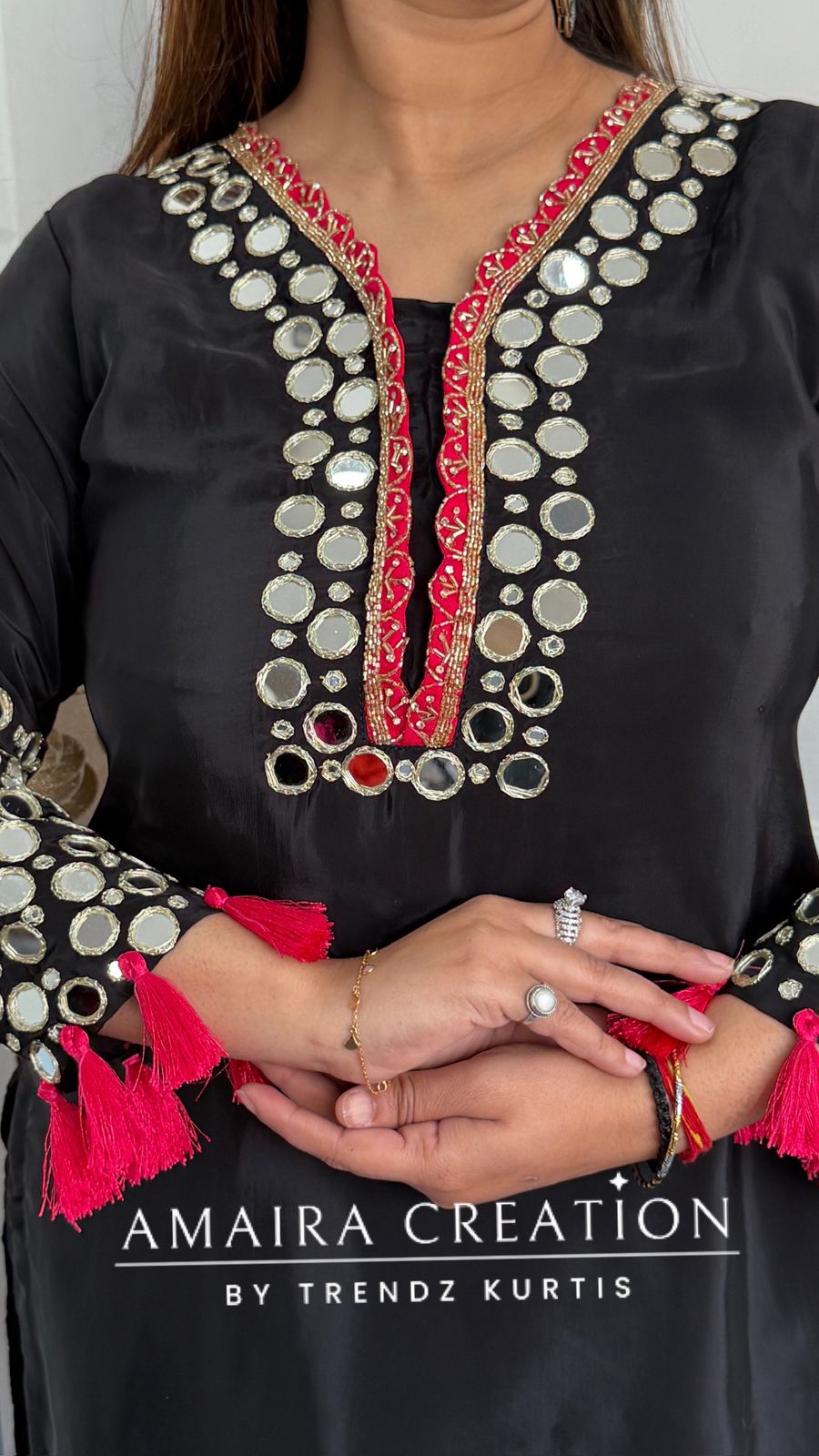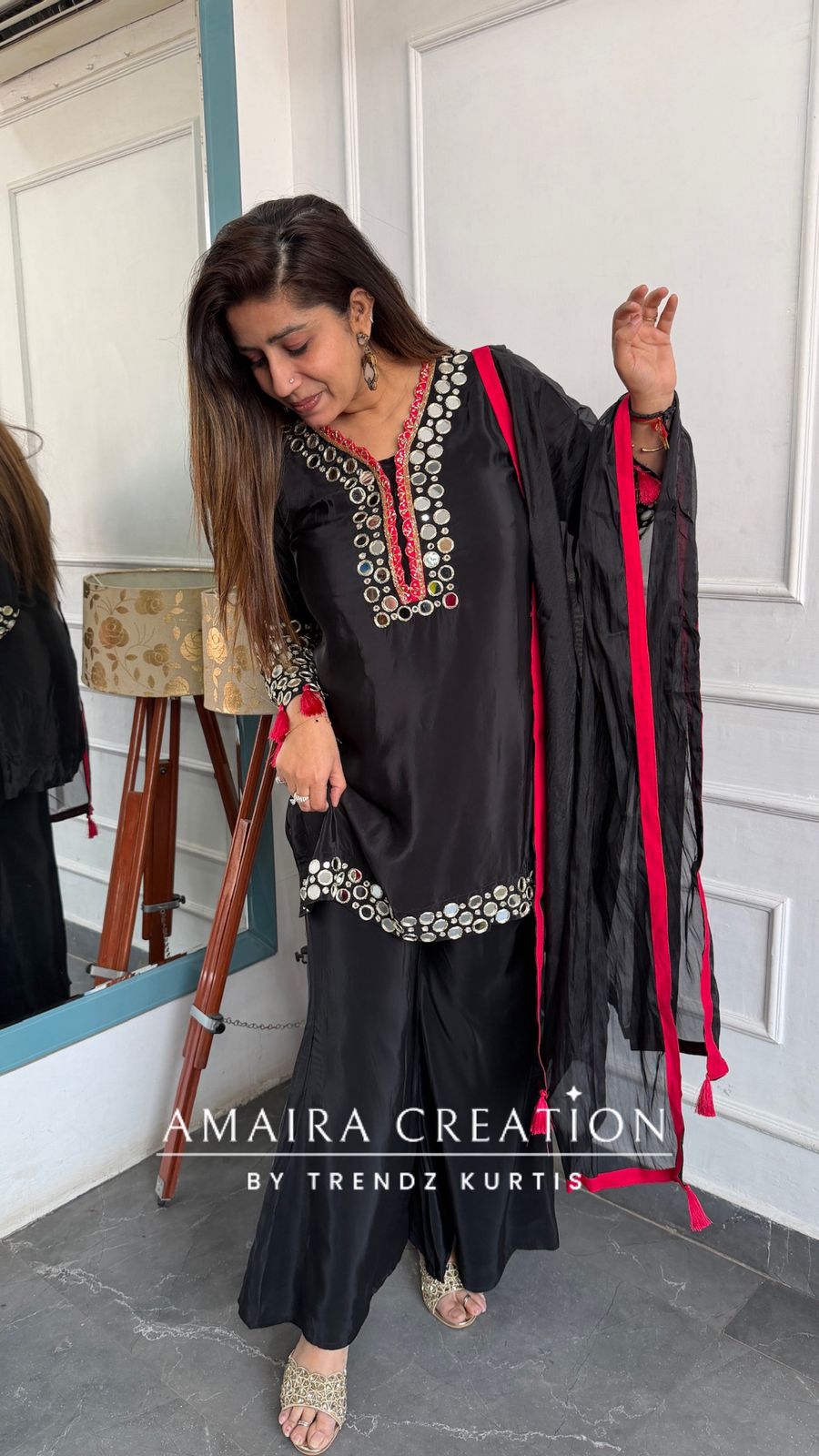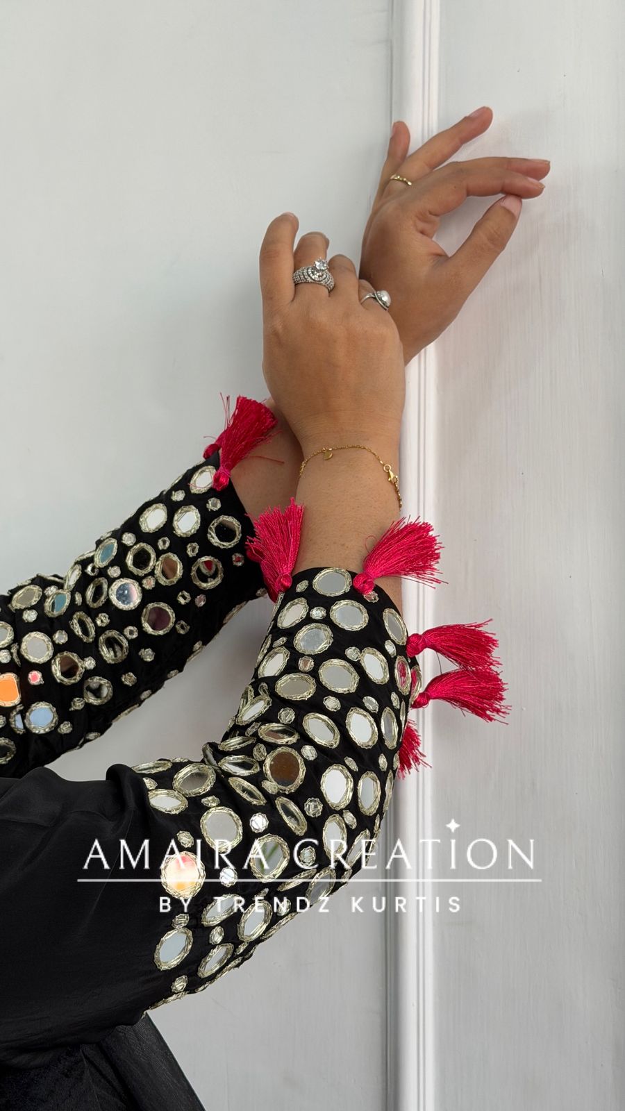 Premium Crepe Black Colour Original Mirror Work Detailing Bell Bottom Plazo Set