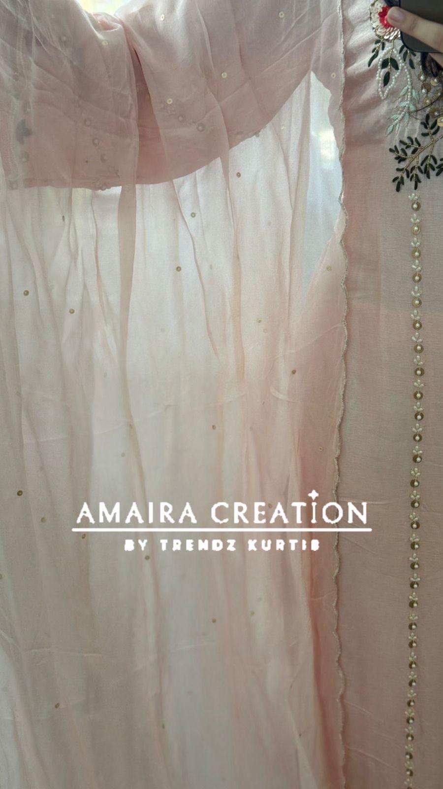 Premium Dola Silk Light Peach Beautiful Embroidered Pant Set