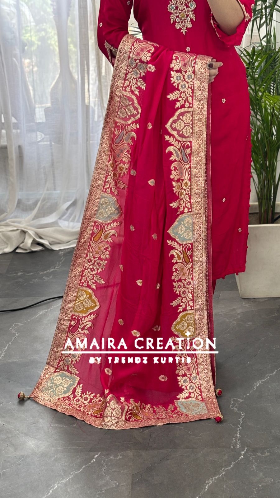 Kurti length 46 Inches (Approx) Pant length 37 Inches (Approx) Pocket Available Dry Clean Only *Disclaimer: Please note that minor color variations may arise due to varying screen resolutions.*