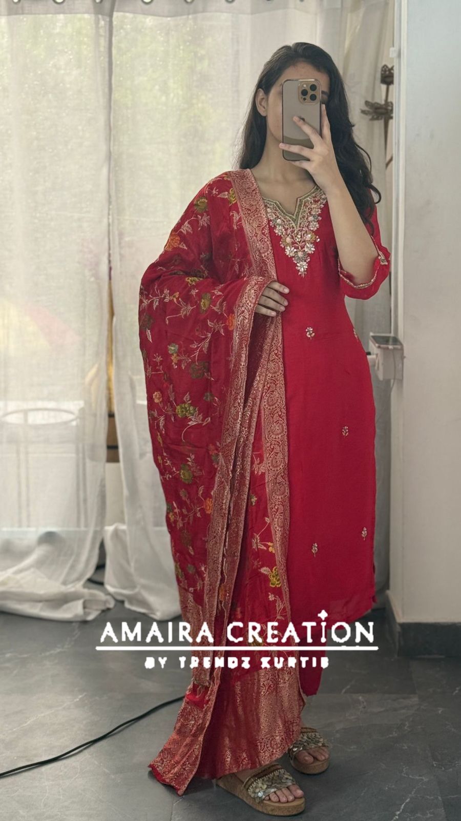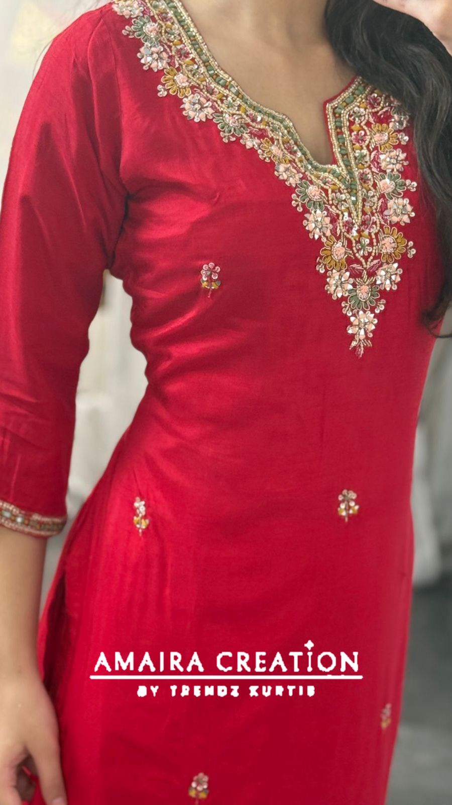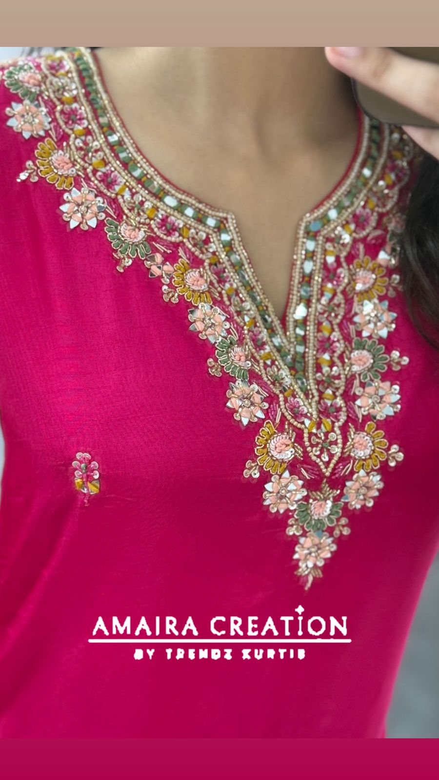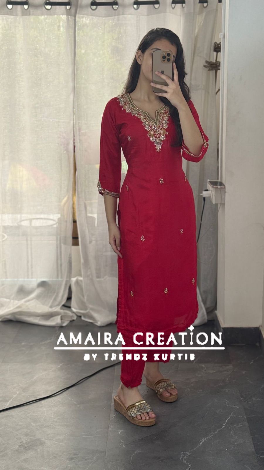 Kurti length 44 Inches (Approx) Pant length 37 Inches (Approx) Dry Clean Only *Disclaimer: Please note that minor color variations may arise due to varying screen resolutions.*
